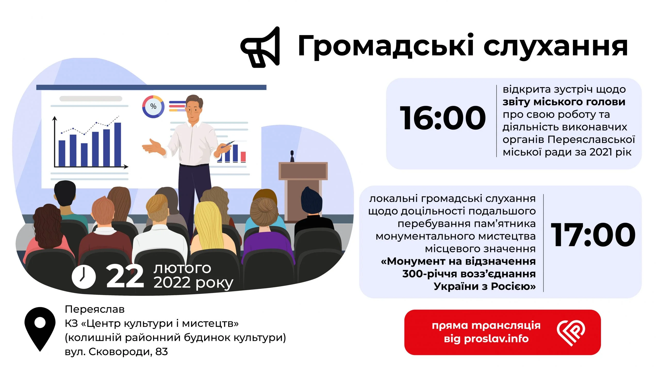 Переяславська міська рада запрошує на громадські слухання – відкриту зустріч щодо звіту міського голови про свою роботу та діяльність виконавчих органів Переяславської міської ради за 2021 рік