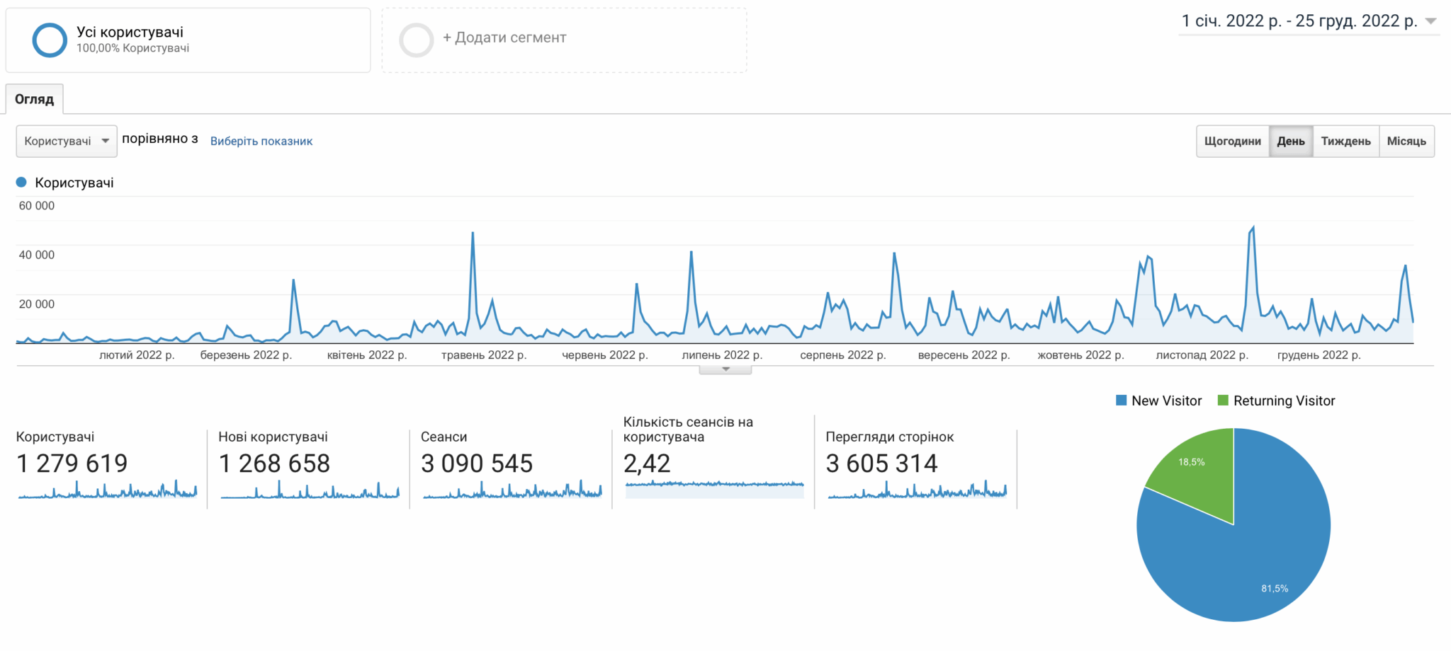 За 2022 рік інтернет-видання отримали значний приріст у відвідуваності сайтів. Наша команда хоче поділитися статистикою нашого ресурсу, спираючись на Google Analytics у період з 1 січня 2022 року по 25 грудня 2022 року.