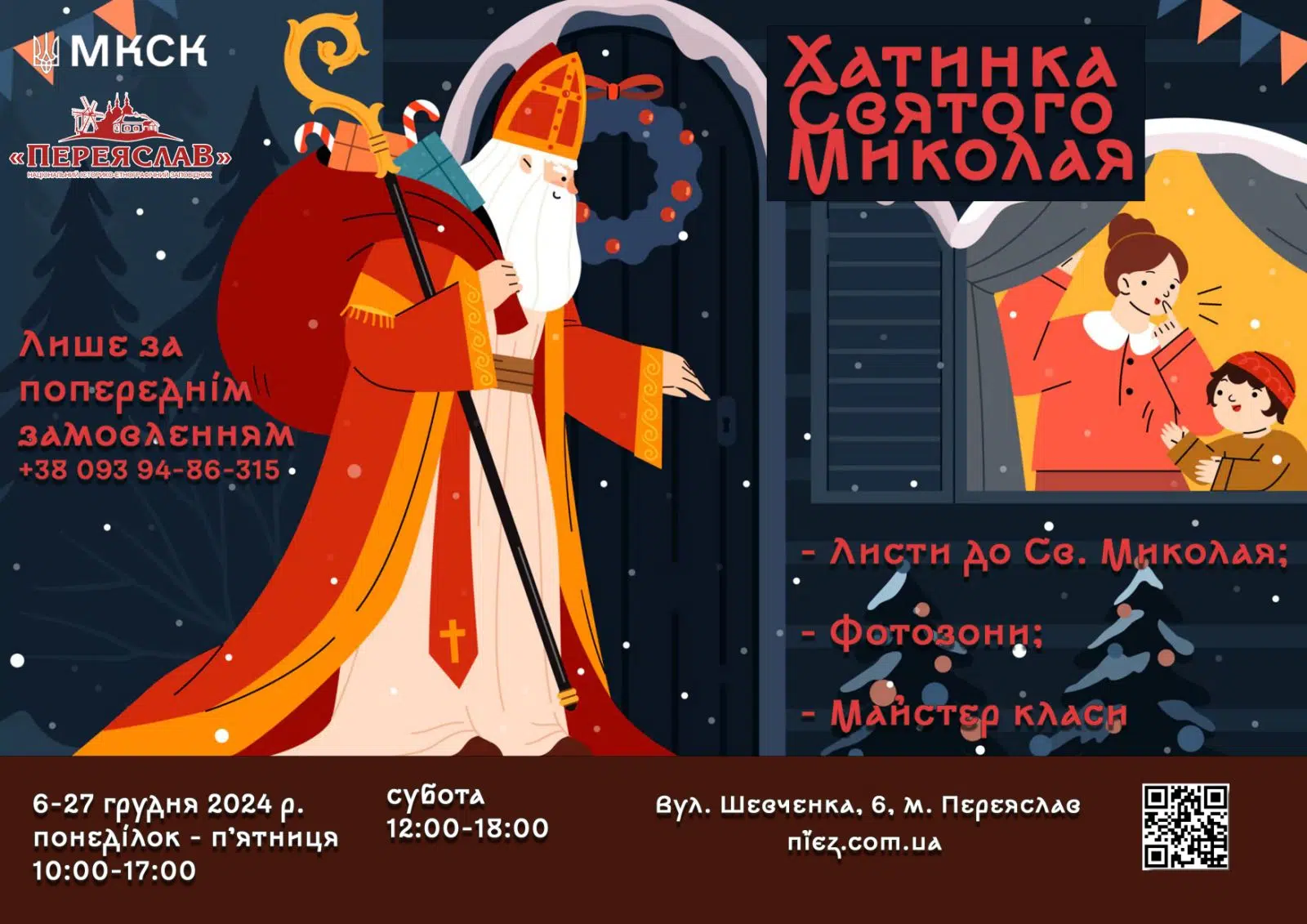 З 6 по 27 грудня Національний історико-етнографічний заповідник «Переяслав» організовує роботу Хатинки Святого Миколая, про це повідомили на офіційній Facebook сторінці заповідника. Захід має на меті популяризацію українських різдвяних традицій та знайомство з національними звичаями через інтерактивні заходи.