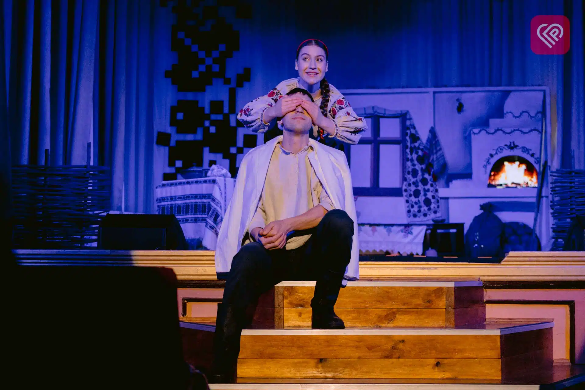 А далі актори у неймовірно красивих декораціях української хати продемонстрували усі притаманні нашій місцевості обряди. Розпочалося дійство з залицяння і сватання.