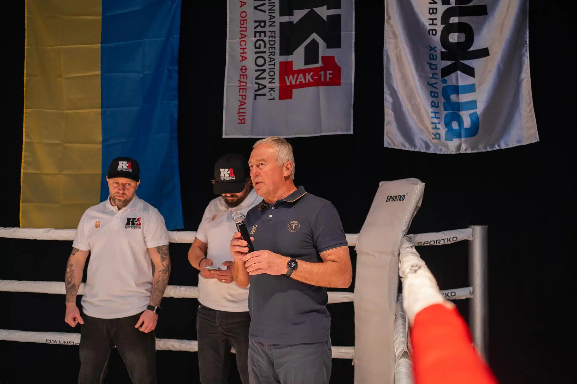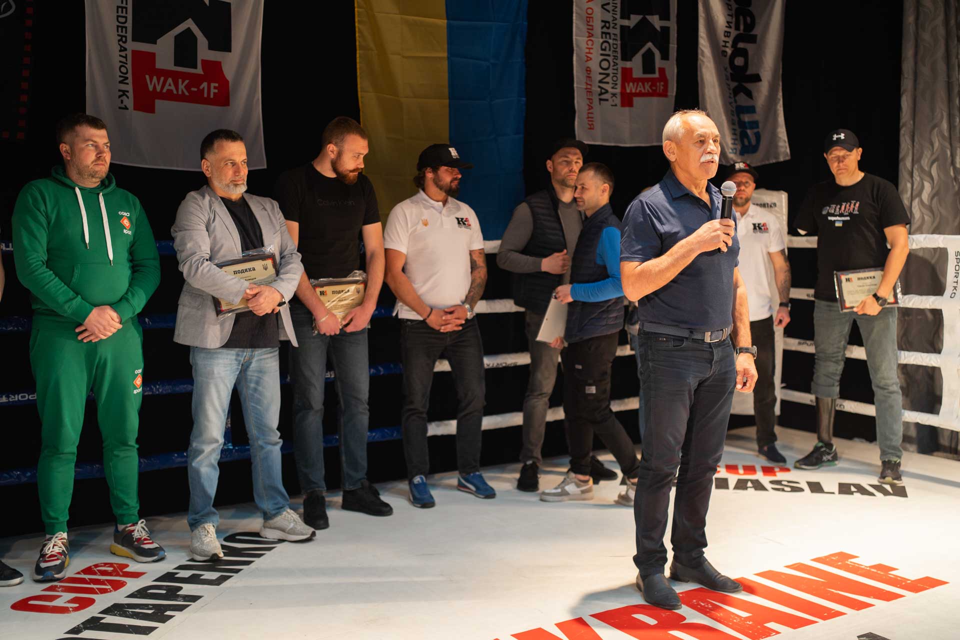 Важливе слово мав і віце-президент Київської обласної федерації К-1 Володимир Чабан, який подякував захисникам та зізнався, що у залі бракує багатьох спортсменів, які загинули на фронті. Його слова: «Наше життя триває завдяки їх життям» – викликали емоції у всіх присутніх.
