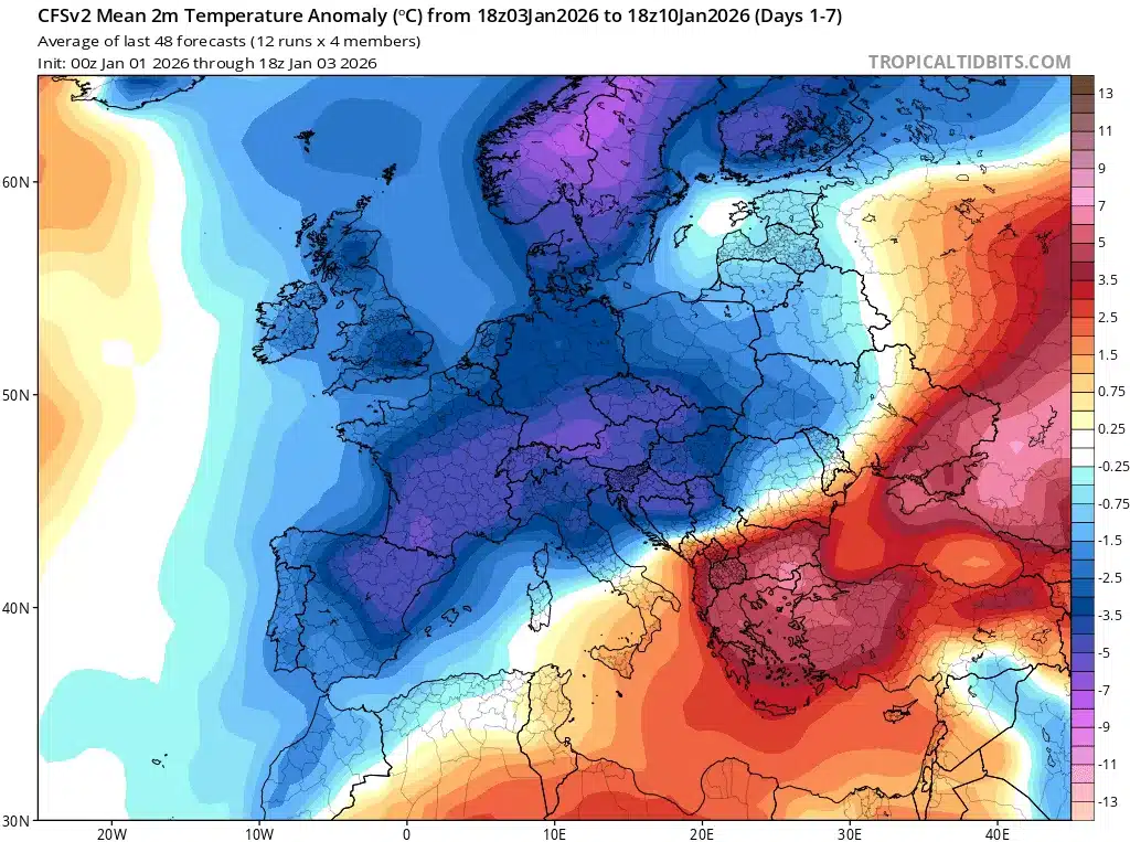 У суботу, 10 січня, очікується встановлення холодної погоди з невеликим снігом та ожеледицею. Вночі стовпчики термометрів опустяться до -9…-14 °С, на півночі й заході місцями до -19 °С. Удень температура становитиме -6…-11 °С, у Криму – до -5 °С.