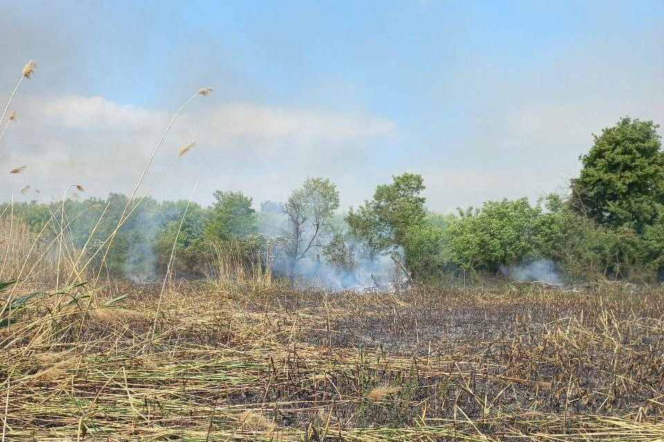 Тільки у другій половині дня, о 15:40, пожежу було повністю ліквідовано. Загрози життю людей немає, вогнем знищено 1 Га очерету.