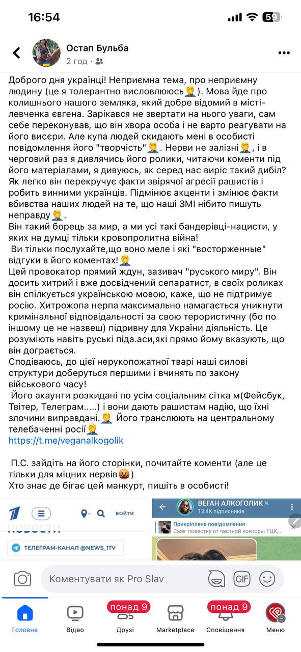 «Як легко він перекручує факти звірячої агресії рашистів і робить винними українців. Підмінює акценти і змінює факти вбивства наших людей на те, що наші ЗМІ нібито пишуть неправду. Він такий борець за мир, а ми усі такі бандерівці-нацисти, у яких на думці тільки кровопролитна війна! Ви тільки послухайте, що воно меле і які “восторженные” відгуки в його коментах!…Цей провокатор прямий ждун, зазивач “руського миру”. Він досить хитрий і вже досвідчений сепаратист, в своїх роликах він спілкується українською мовою, каже, що не підтримує росію», – коментує ролик військовий.