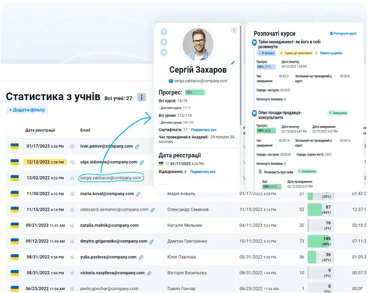 - можливість проходження курсів у зручному темпі з будь-якого пристрою;