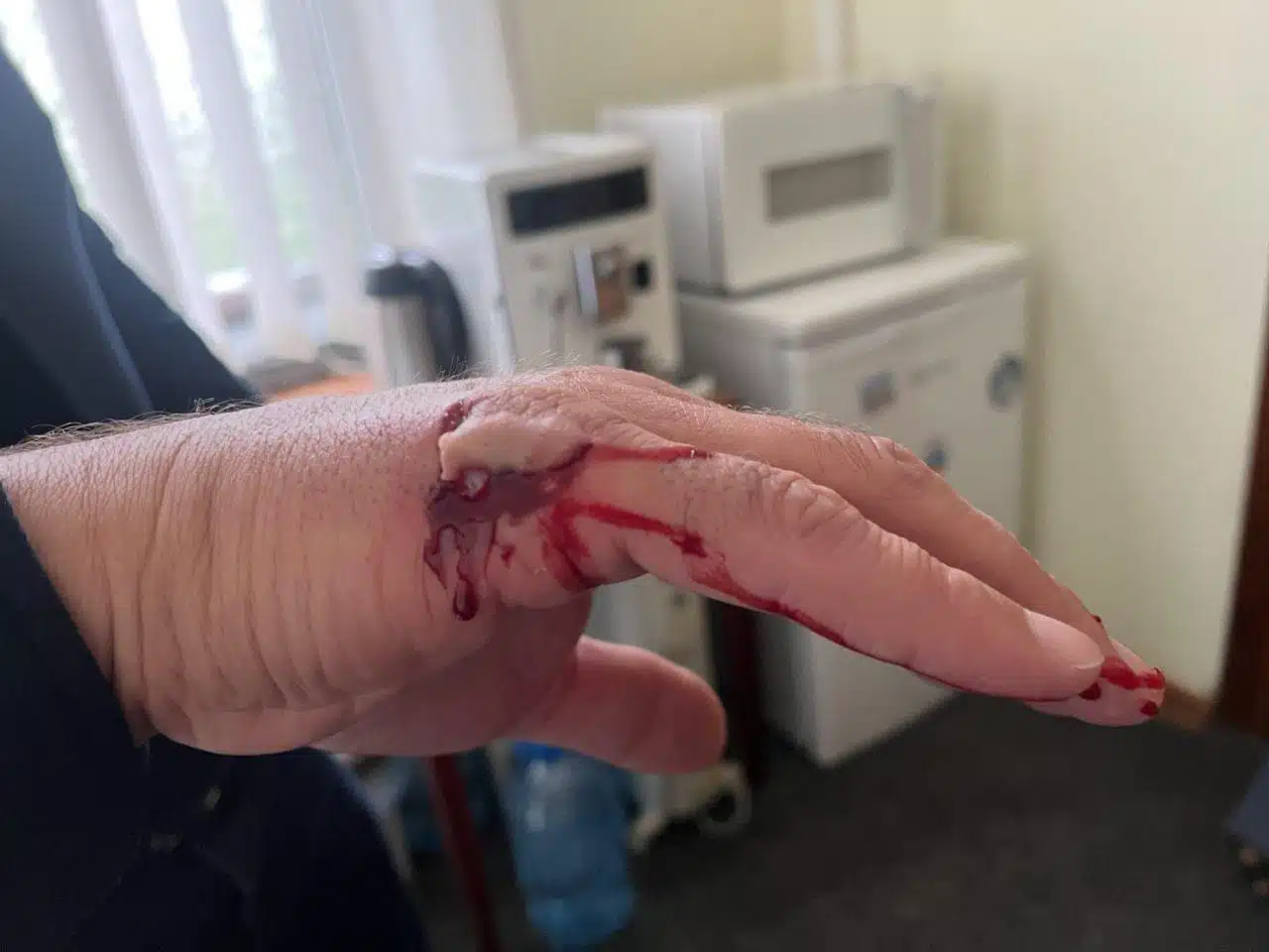 «Вчора перед початком сесії скажена та неврівноважена громадянка Дудар залишила «автограф» своїх зубів на моїй руці. Довелося вакцинуватися. Сподіваюсь, що злість та яд не передадуться, а правоохоронці дадуть правову оцінку її діям. І окремо, сподіваюсь, що той хто її фінансує, оплатить Галі послуги стоматолога».