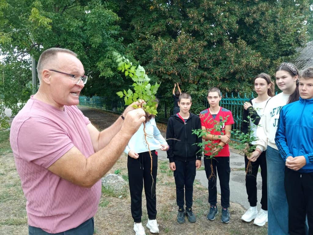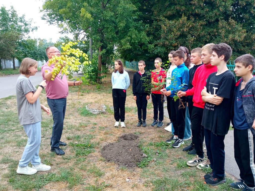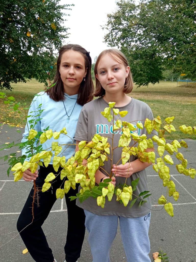 А старшокласники висадили з педагогом незвичайні та привабливі дерева – кельрейтерію, яку ще називають «деревом-ліхтариком» або мильним деревом через те, що в корі містяться сапоніни – відбілюючі речовини.