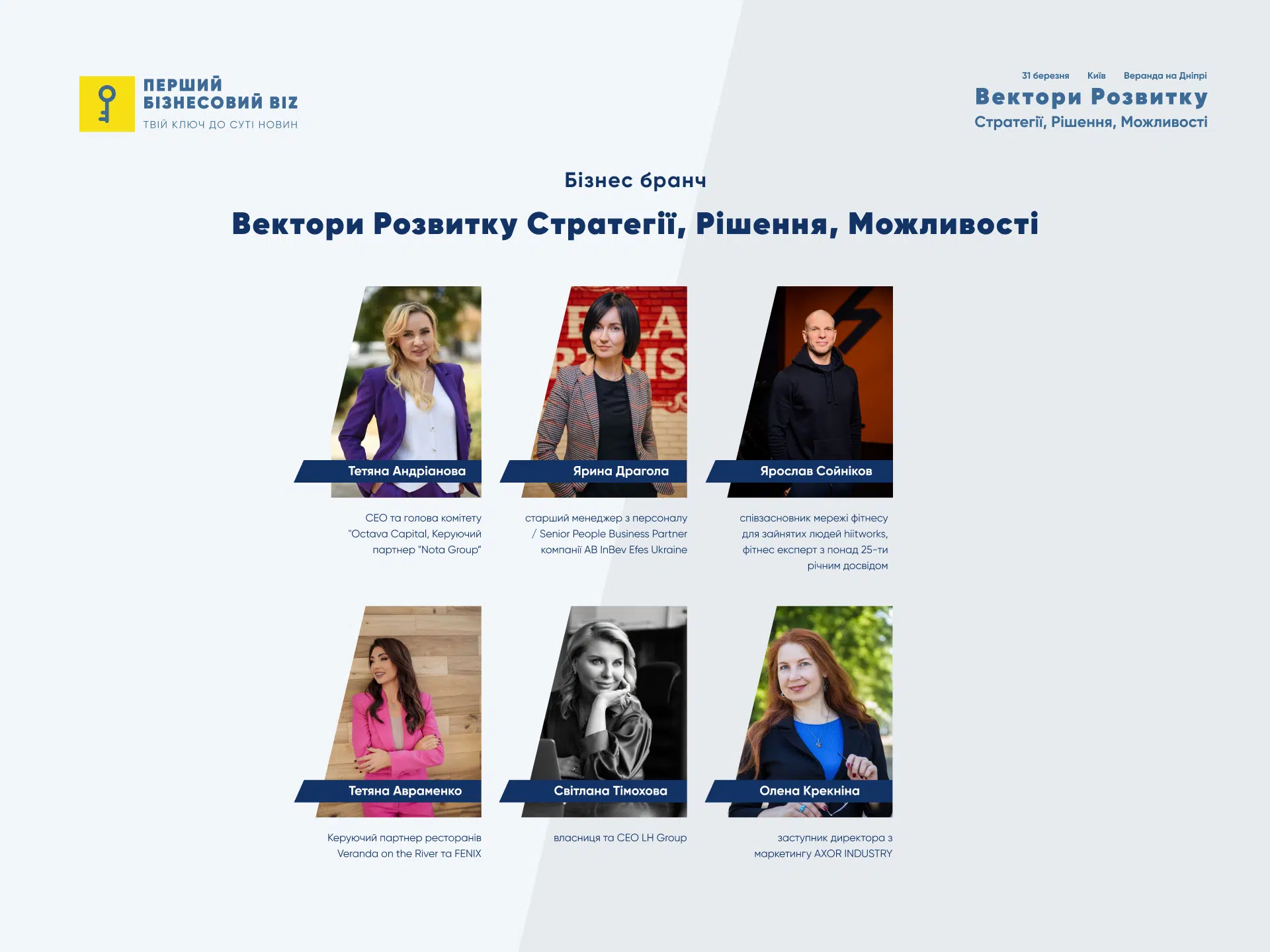 Світ змінюється, і бізнесу потрібно адаптуватися, шукати нові можливості та впроваджувати ефективні рішення. Саме тому бізнес-видання «ПЕРШИЙ БІЗНЕСОВИЙ BIZ» продовжує серію бізнес-бранчів, що об’єднують лідерів ринку, підприємців та експертів для зміцнення бізнес-середовища України.