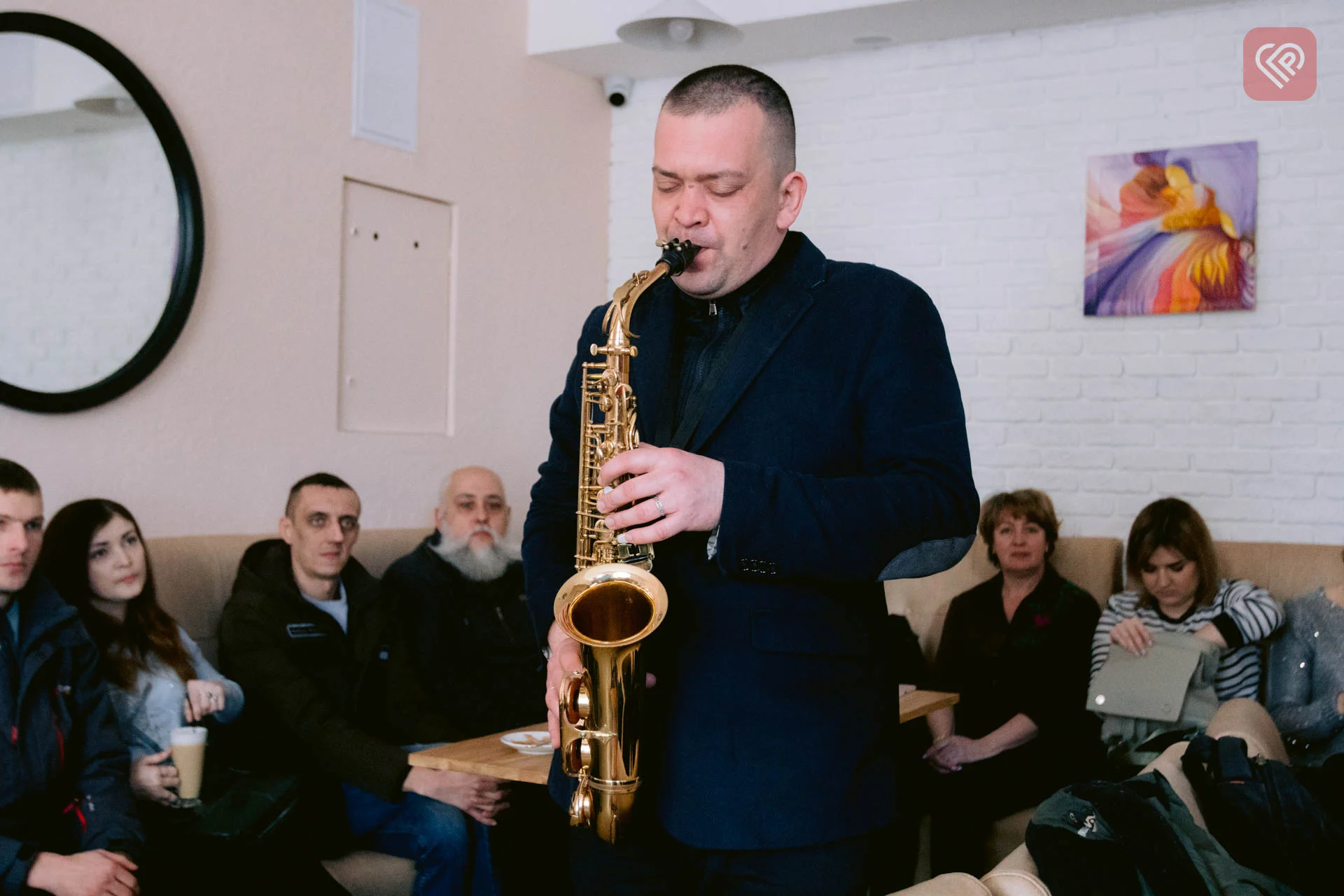 Передача лотів відбувалася сьогодні у сімейному кафе “Ейфорія”, де на початку з українськими піснями виступила бандуристка Леся Горобець та саксофоніст Вадим Ноздровський.