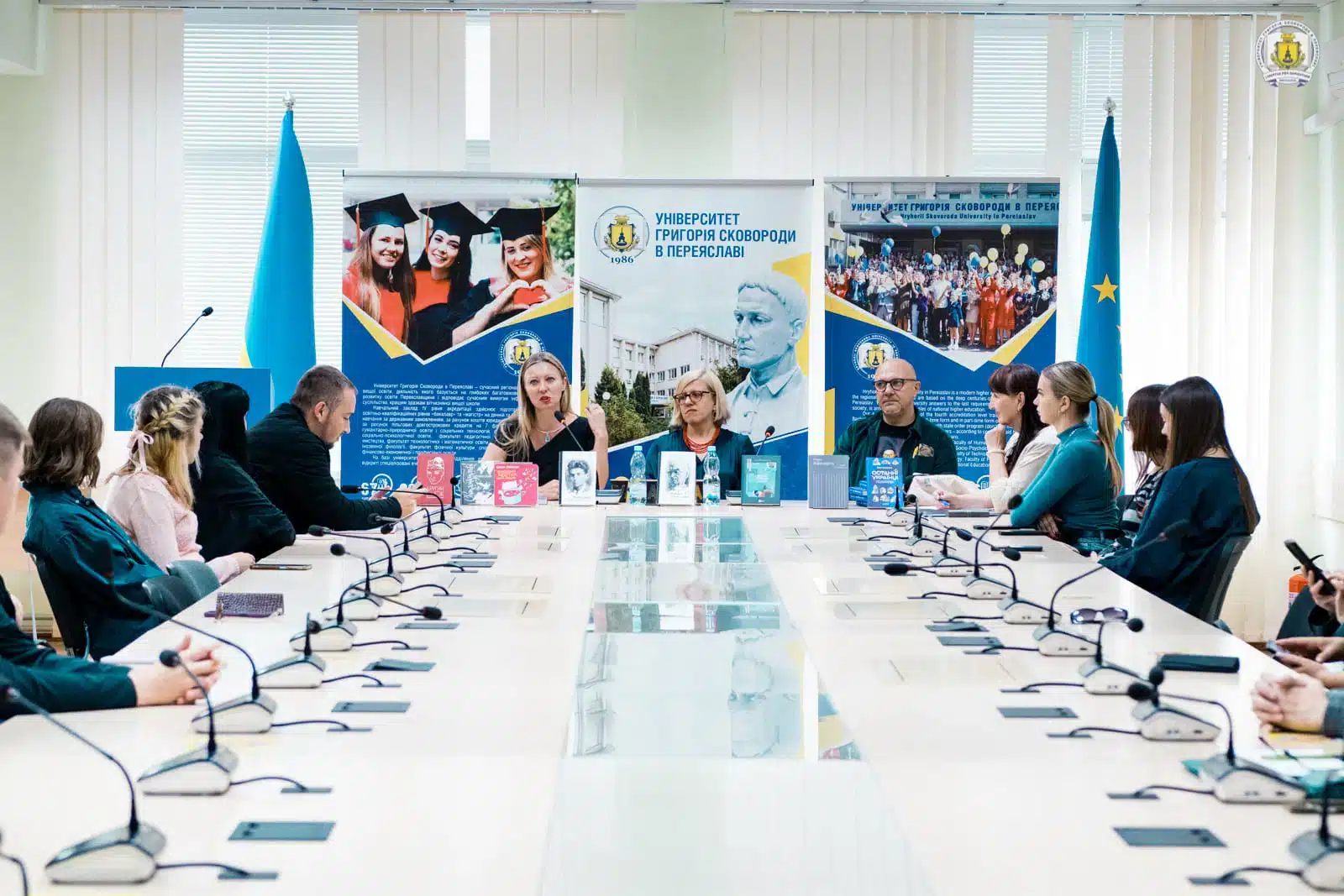 17 вересня Переяслав поринув у вир української культури завдяки проєкту Українського ПЕН «Мереживо. Літературні читання в містечках України». В університеті зібралися містяни, студенти, викладачі та бібліотекарі, щоб поспілкуватися з письменником і журналістом Олегом Криштопою, перекладачкою та літературною критикинею Роксоляною Свято та письменницею, художницею й кураторкою культурних проєктів Оленою Павловою, яка модерувала подію. Цей глибокий діалог про українську ідентичність, історію та джерела натхнення в часи війни було вичерпно розкрито у окремій публікації нашого сайту.