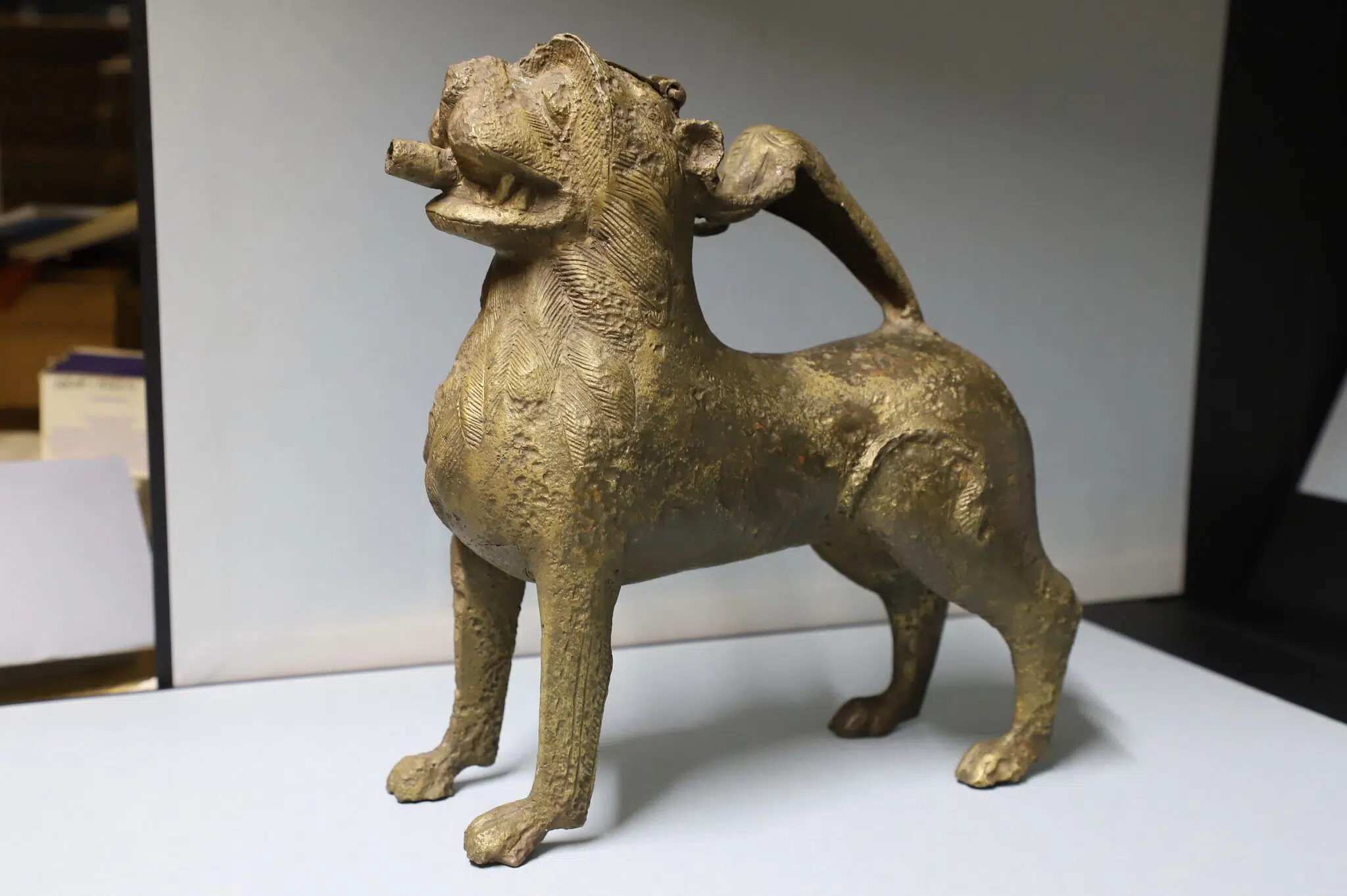 Попри назву «водолій», у таких посудинах зазвичай зберігали не воду, а вино, кажуть науковці. Його наливали через отвір на голові з відкидною кришкою, а виливали – через пащу лева, як із чайника. Обʼєм – близько трьох літрів. У храмах такі фігури могли використовуватись під час ритуальних омовінь.