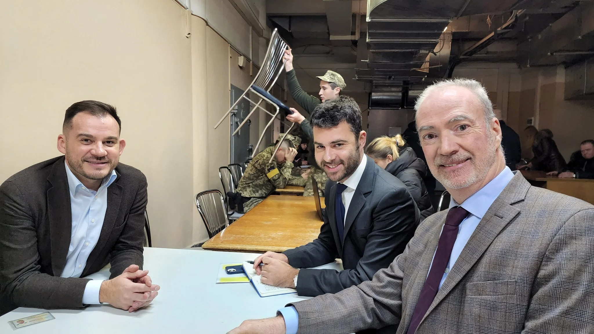 - Посол Франції Етьєн де Понсен поділився фотографією зі сховища, де під час ракетної атаки провів робочу зустріч з віцеміністром економіки Олександром Грибанем. «Висловлюю солідарність з українцями», – написав посол.