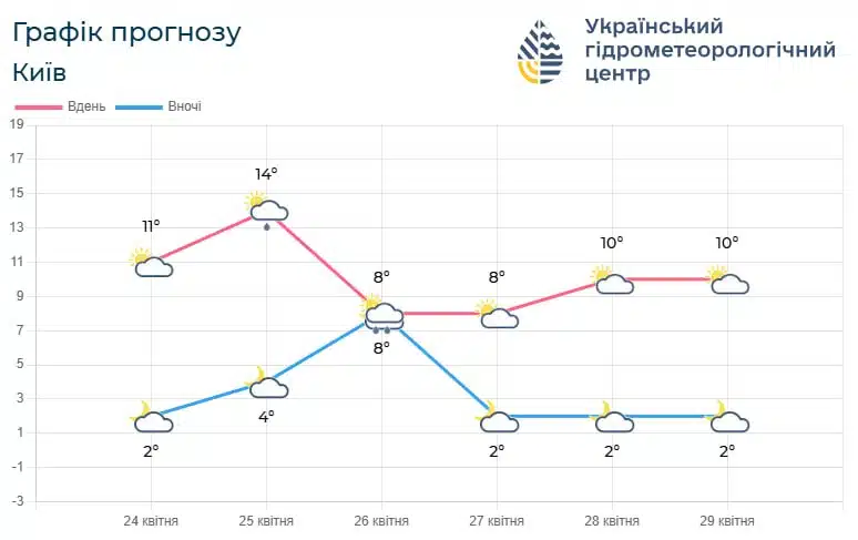 - 25 квітня: вдень місцями очікується невеликий дощ;