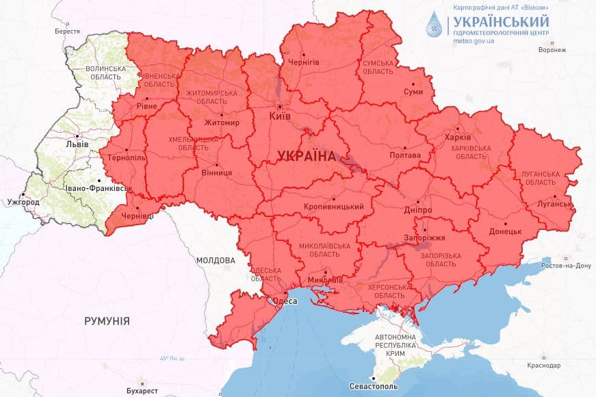 Синоптики наголосили, що небезпека розповсюджується на всі регіони України, окрім Закарпатської, Івано-Франківської, Львівської, Волинської області та Криму.