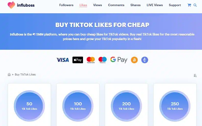 Платформа з багаторічним стажем роботи та великою кількістю позитивних відгуків. Займається просуванням у трьох найбільш популярних мережах: Instagram, TikTok і Threads. Вона пропонує купити лайки в Тік Ток на таких умовах: