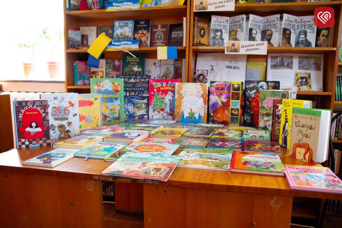 У читальному залі дитячого відділу на столі, немов на вітрині, акуратно виставлено понад 30 нових видань у барвистих палітурках. Директорка бібліотеки Тетяна Майстренко розповідає, що ці книги діти принесли у подарунок протягом останніх кількох тижнів.