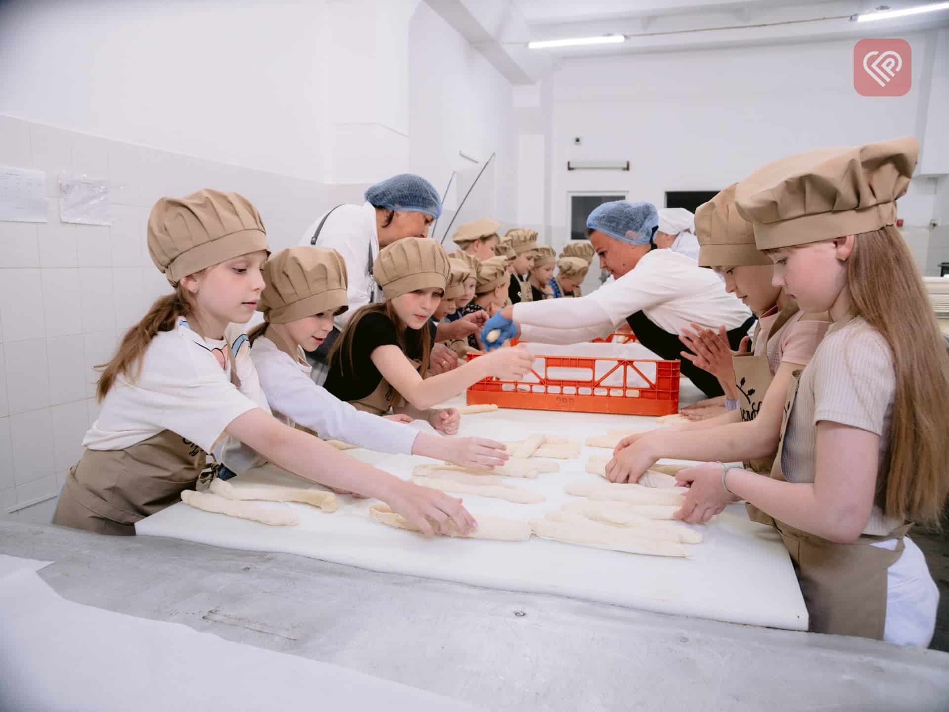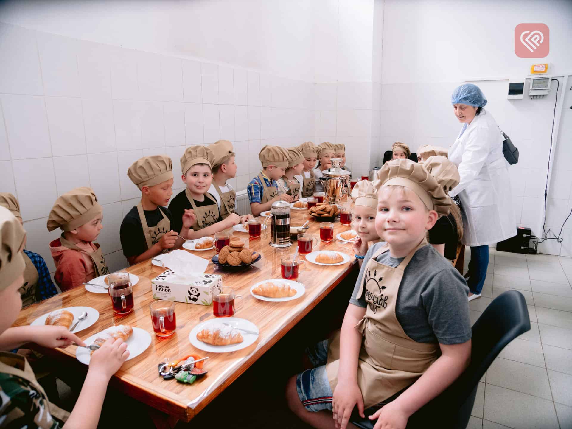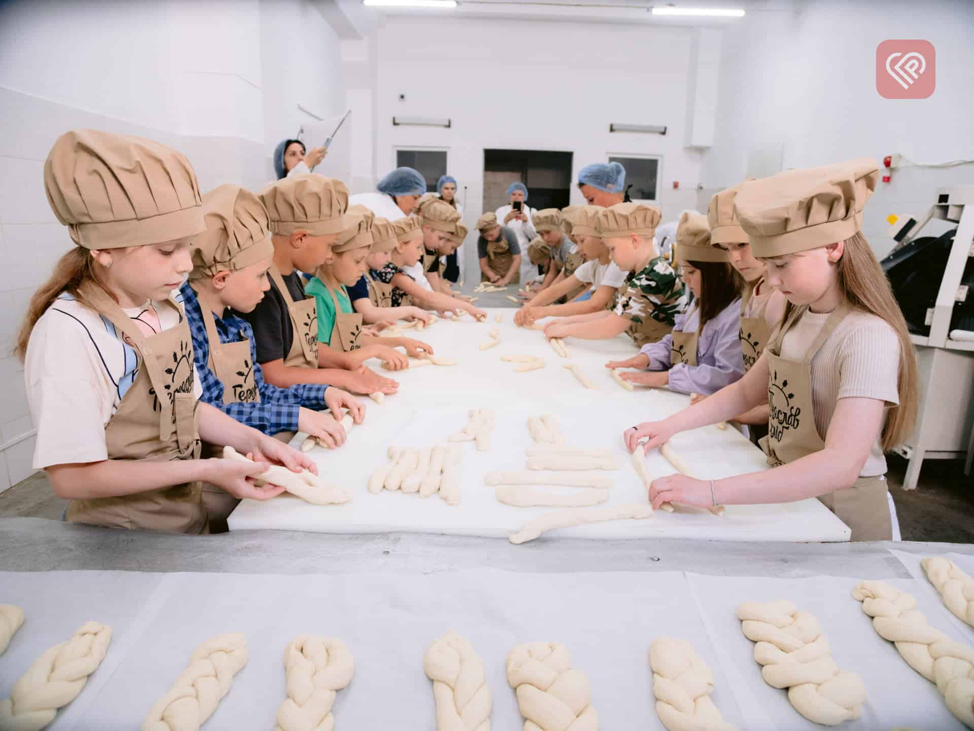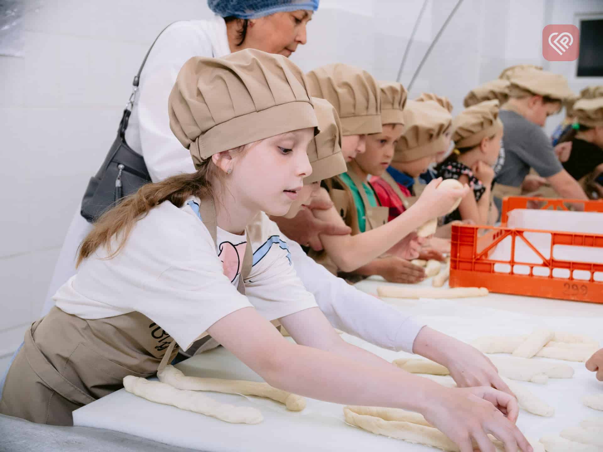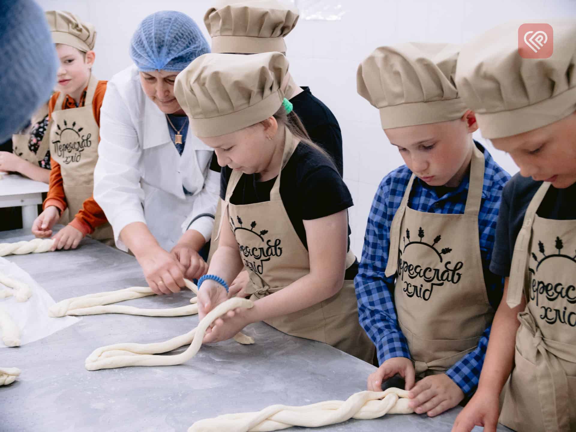 Дітлахи побували й у ролі пекарів. Кожен сформував свою «плетінку», а в кінці екскурсії відвідувачів пригостили чаєм та свіжими круасанами.