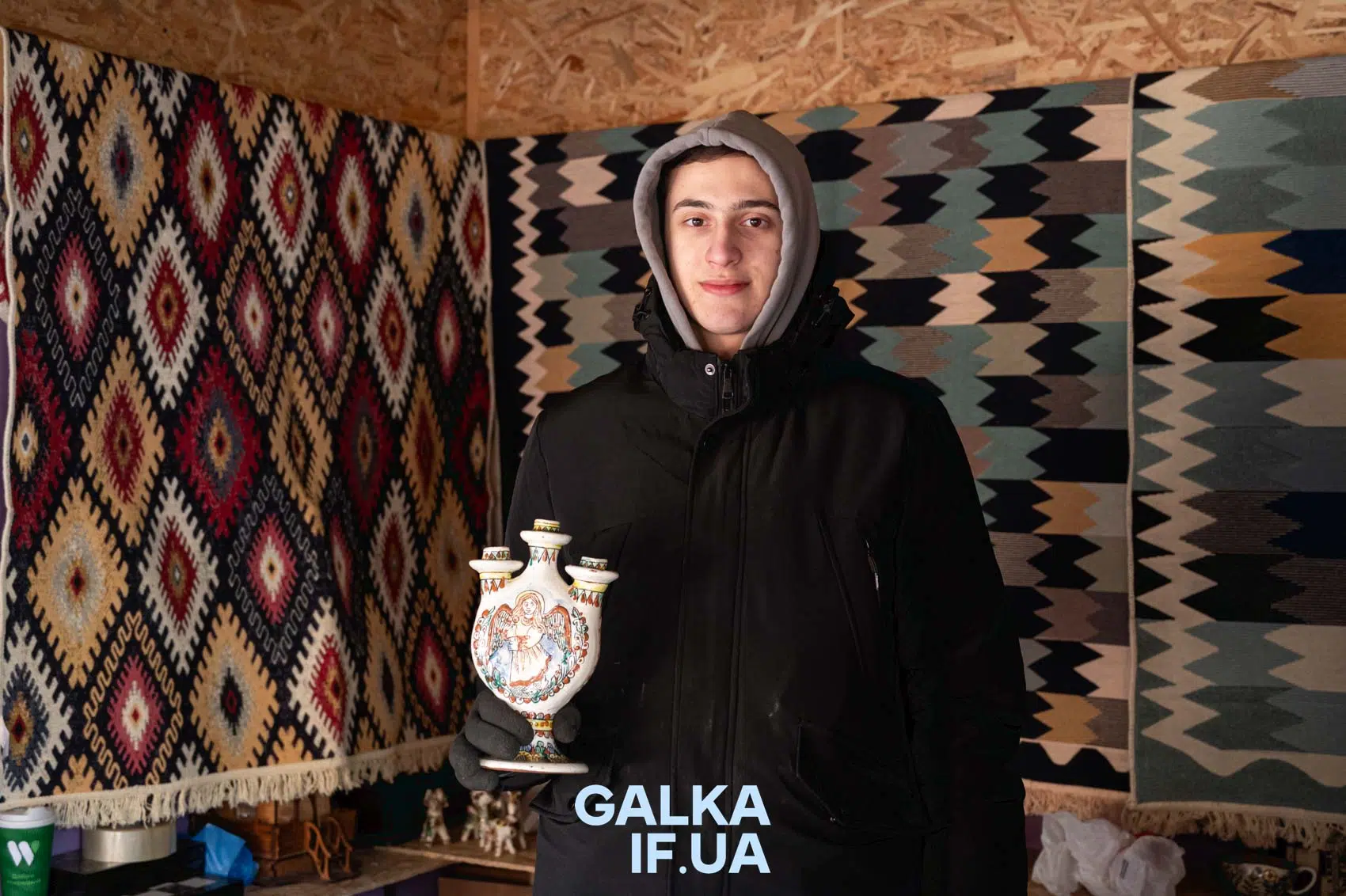 Щосуботи на базар приїжджають майстри з усієї округи. Люда з Верховинського району – одна з них. Вже понад десять років вона займається вишивкою та реставрацією старовинних виробів. Її роботи – це вишиванки, рушники та сорочки різних регіонів. Люда намагається відновити старовинні нитки, шукаючи мотки в скринях бабусі та у знайомих. Її ремесло – це не лише збереження традицій, а й передача майстерності наступним поколінням. Попри складнощі торгівлі, зокрема в зимовий час, вона продовжує працювати, організовуючи продажі через Інтернет та на інших ярмарках.
