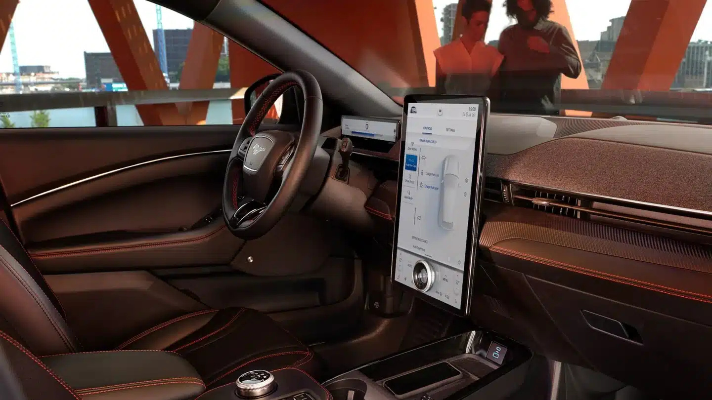 У центрі панелі — 15,5-дюймовий вертикальний дисплей SYNC 4A з бездротовою підтримкою Android Auto та Apple CarPlay. Інтерфейс постійно оновлюється, тож власник отримує нові функції без відвідування сервісу. Преміальна аудіосистема B&O з 10 динаміками перетворює салон на концерт-хол, а панорамний дах із технологією Solar Glass захищає від перегріву.