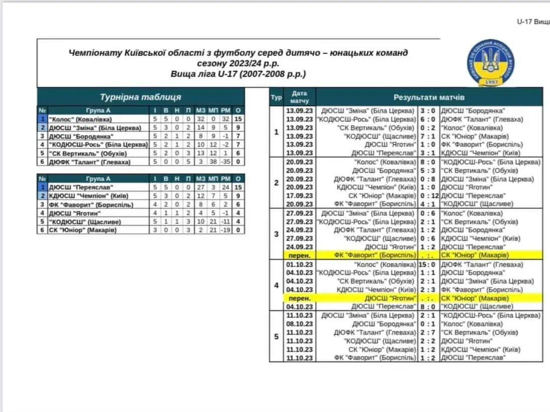 - ДЮСШ Переяслав – КОДЮСШ (Щасливе) – 8:0;