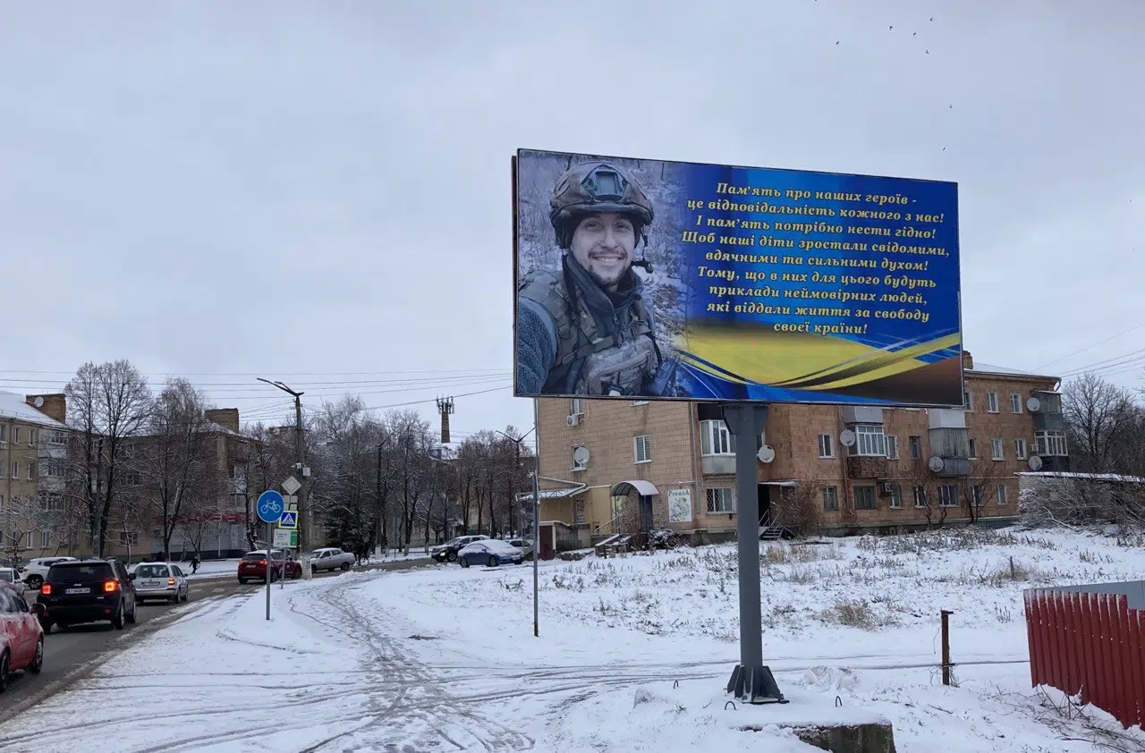 У центрі Переяслава тепер височіє білборд із портретом захисника Дмитра Ружановського, який віддав своє життя, захищаючи незалежність України, інформує Proslav.