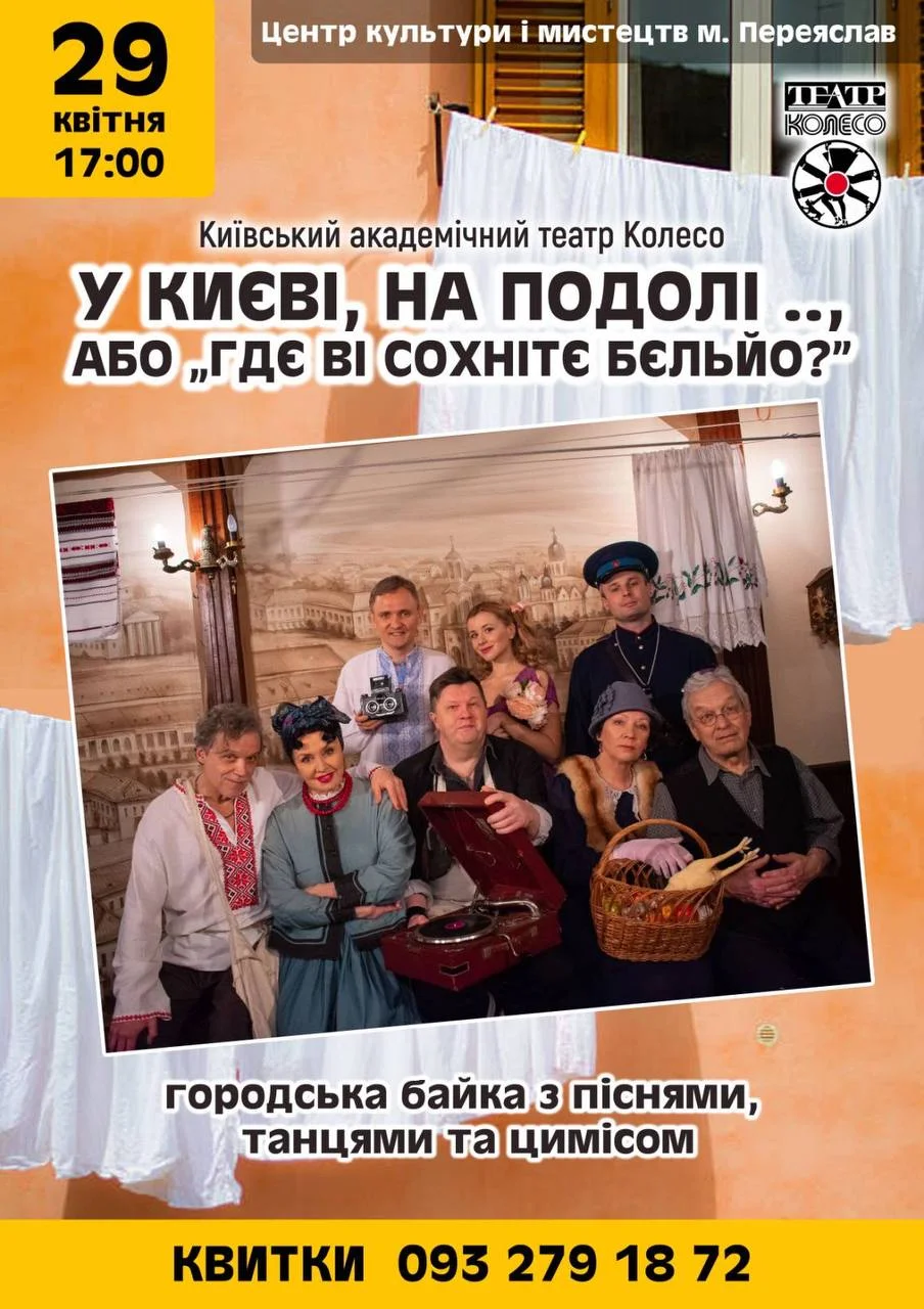 Крім того, скасовано виставу «У Києві, на Подолі.., або Гдє ві сохнітє бельйо?» Київського академічного театру «Колесо», яка мала відбутися 29 квітня о 17:00 у другому корпусі Центру культури та мистецтв. За попередньою інформацією відділу культури міської ради, переяславці зможуть відвідати цей захід восени.