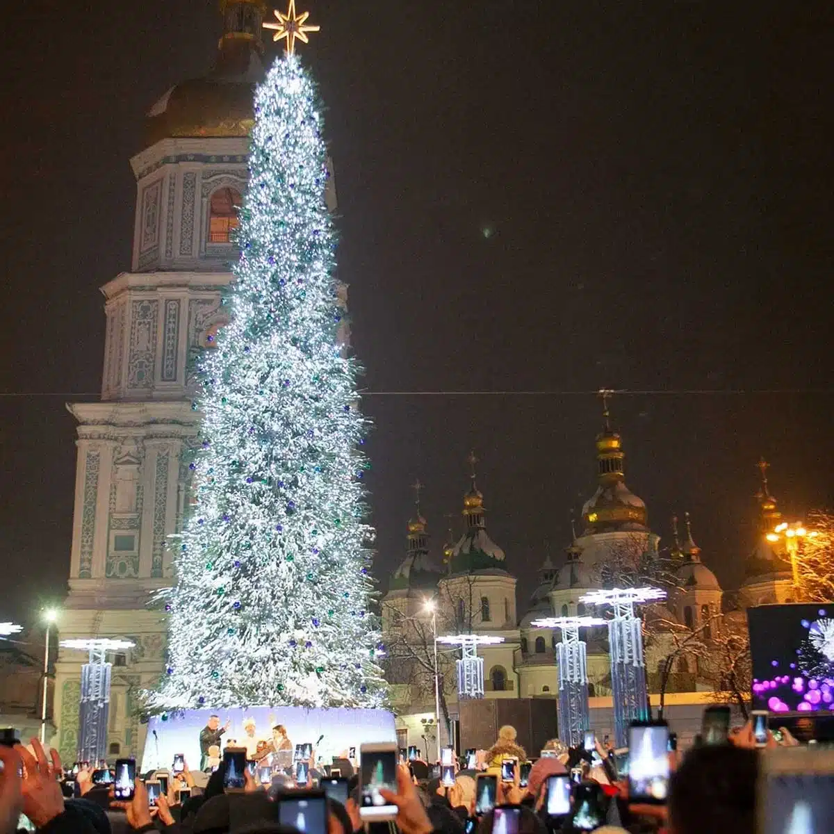 Її прикрасили синьо-жовтими кулями, білими голубами і зображенням Архистратига Михаїла – покровителя Києва. Вона стала символом опору, солідарності та віри у перемогу навіть у найважчі часи.