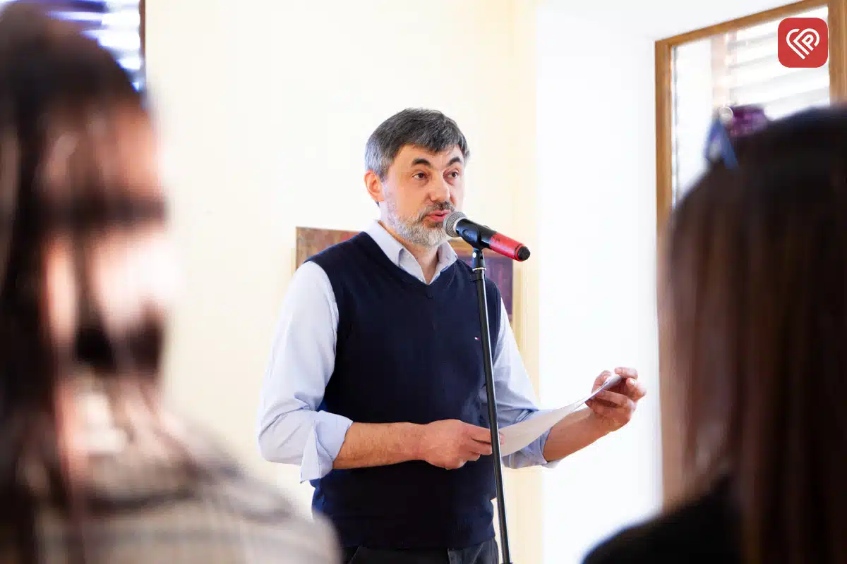 Свій виступ поет розділив на кілька тематичних блоків, поєднавши глибокі роздуми про життя з романтикою та болем сьогодення. Першу частину зустрічі Юрій Цвіркун присвятив світлій та філософській поезії – про свободу, пошук себе та цінність кожної миті: