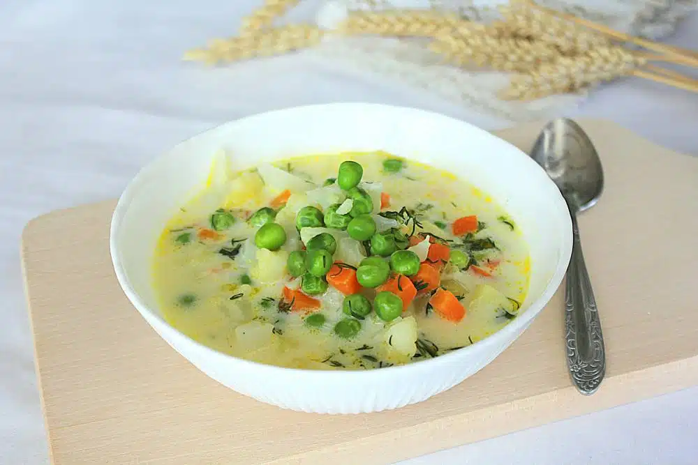 2. Вершковий суп із зеленим горошком та цвітною капустою