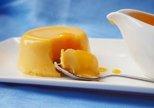 Наріжте гарбуз кубиками 1,5-2 см (так він швидше відвариться) і покладіть в киплячу воду так, щоб вода тільки покривала його. Додайте цукор, відваріть до м’якості та подрібніть у блендері. В отриману масу додайте коньяк, молоко з вершками. Знову все збийте. Розведіть желатин і влийте його в масу. Все перемішайте, розлийте десерт по склянках і поставте в холодильник.
