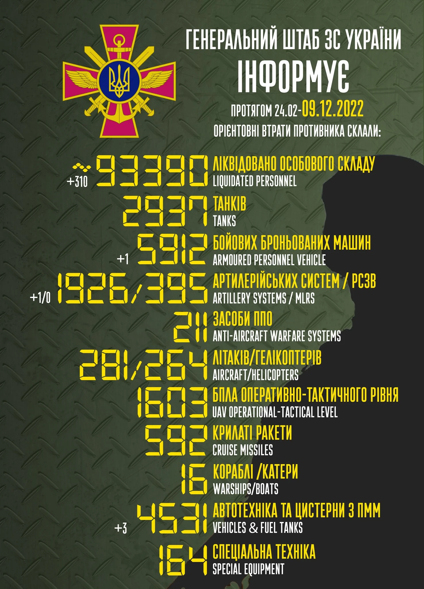 Станом на ранок 9 грудня загальні втрати загарбників склали: