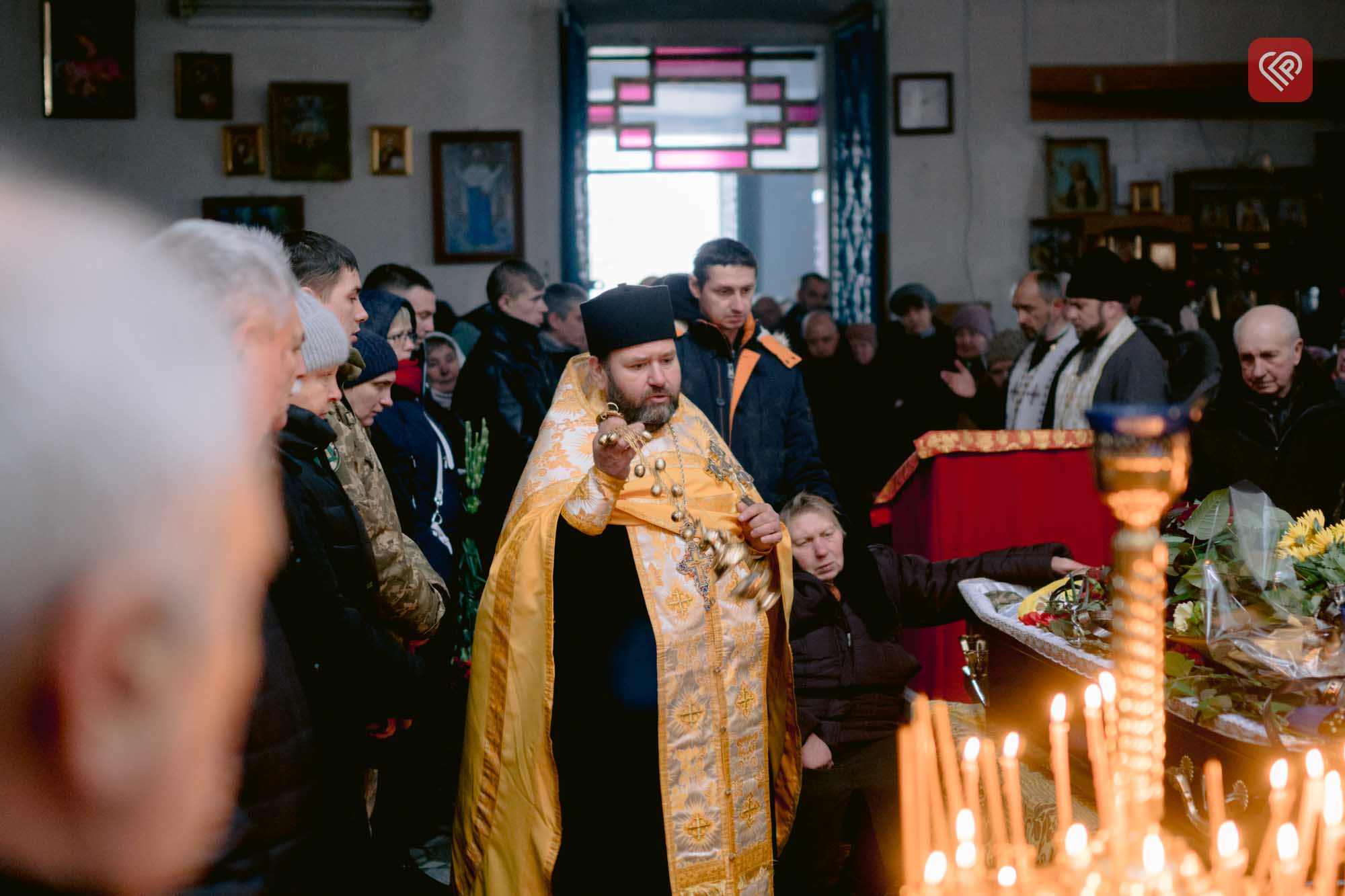 Прощалися з Героєм у церкві святих Бориса і Гліба. Це було перше прощання із захисником у її стінах після переходу до ПЦУ.