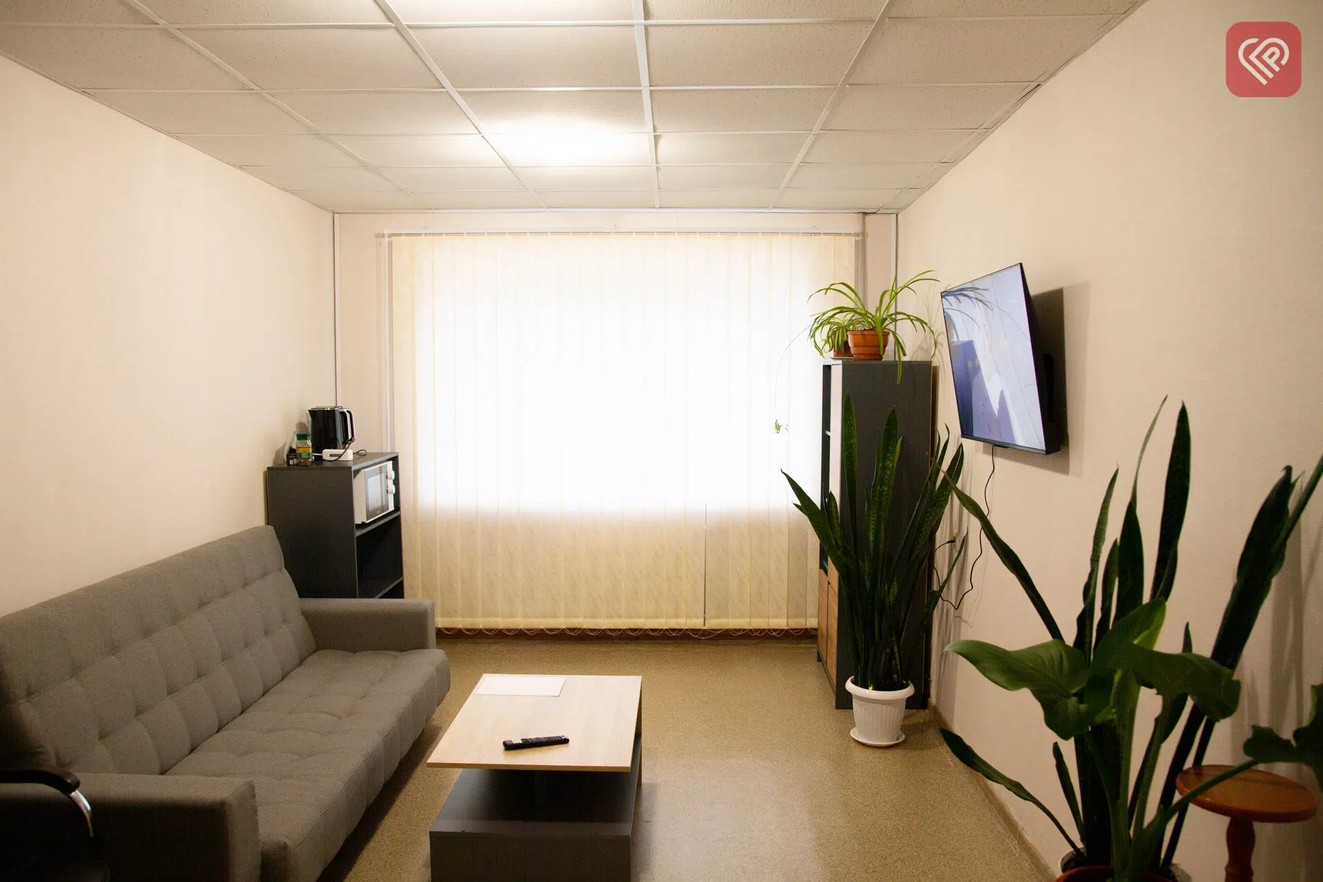 Одна кімната простору облаштована як зона відпочинку, де є м’які меблі, телевізор, чайник, мікрохвильова піч. Там організовуватимуть творчі заняття, майстер-класи, спільний перегляд фільмів, сеанси арт-терапії.