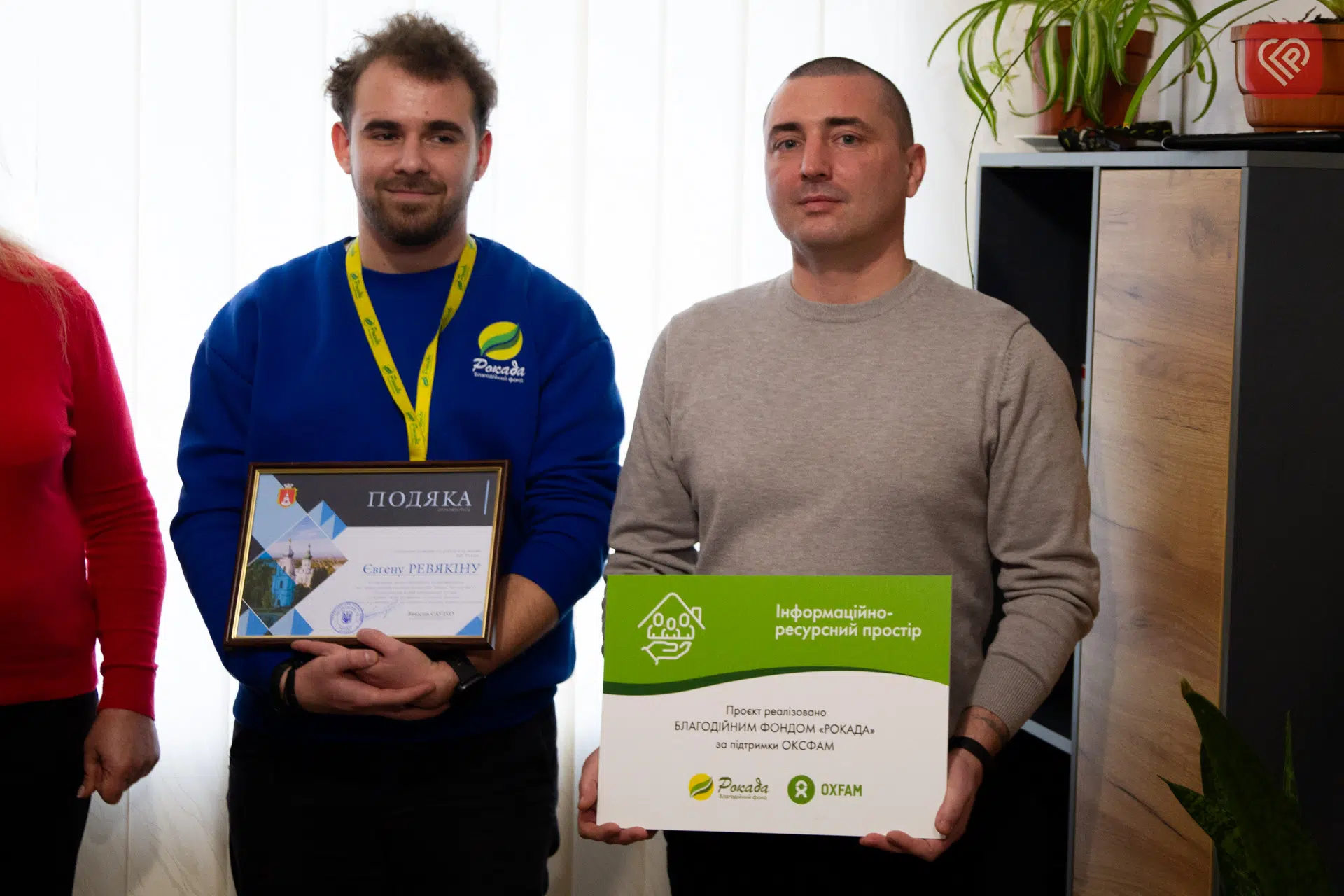 Подяки міськради вручили представнику БФ «Рокада» Євгену Ревякіну, голові ради ВПО Валентині Леоновій, начальниці Центру соціальних служб Юлії Ляльці, начальниці КП «УК «ВУЖКГ» Тетяні Сущук, ІТ-спеціалісту Управління соцзахисту Сергію Яковенку.