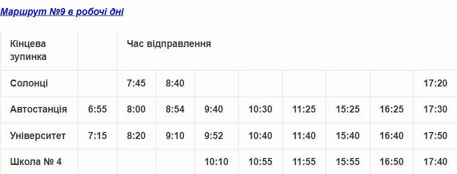 Маршрут №9 відновив свою роботу. Оновлені графіки руху громадського транспорту
