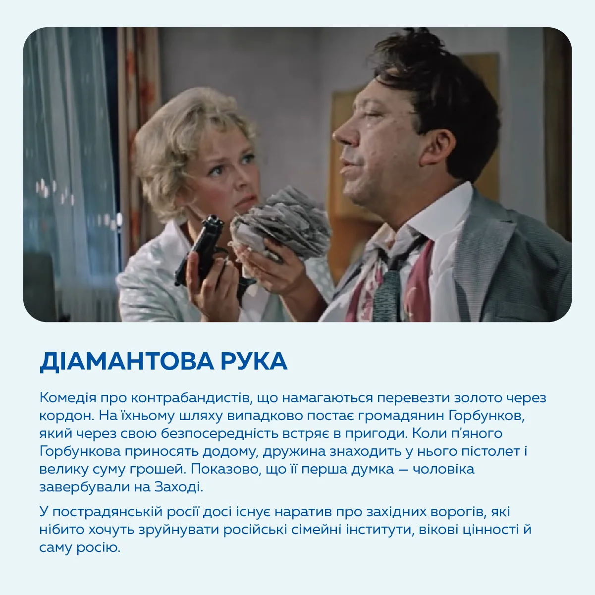 І якщо хтось досі вважає ці новорічні фільми та серіали безневинними, мусимо вас розчарувати. Як у будь-якому своєму продукті – росіяни прагнуть просунути вигідні їм наративи. ProSlav вирішив поділитися інфографікою від Internews.
