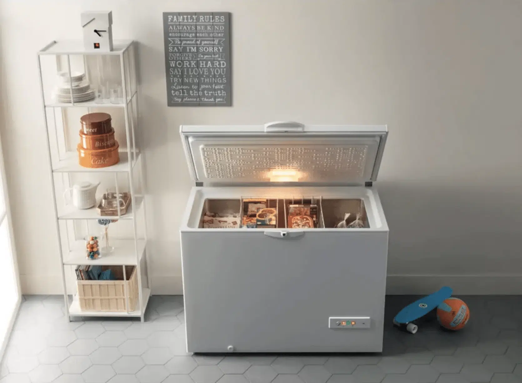 Мало хто знає, але вертикальні морозильники мають один прихований недолік — вони потребують додаткового простору для відкривання дверей (мінімум 60 см), тоді як скриня відкривається вгору, не займаючи додаткової площі навколо себе.