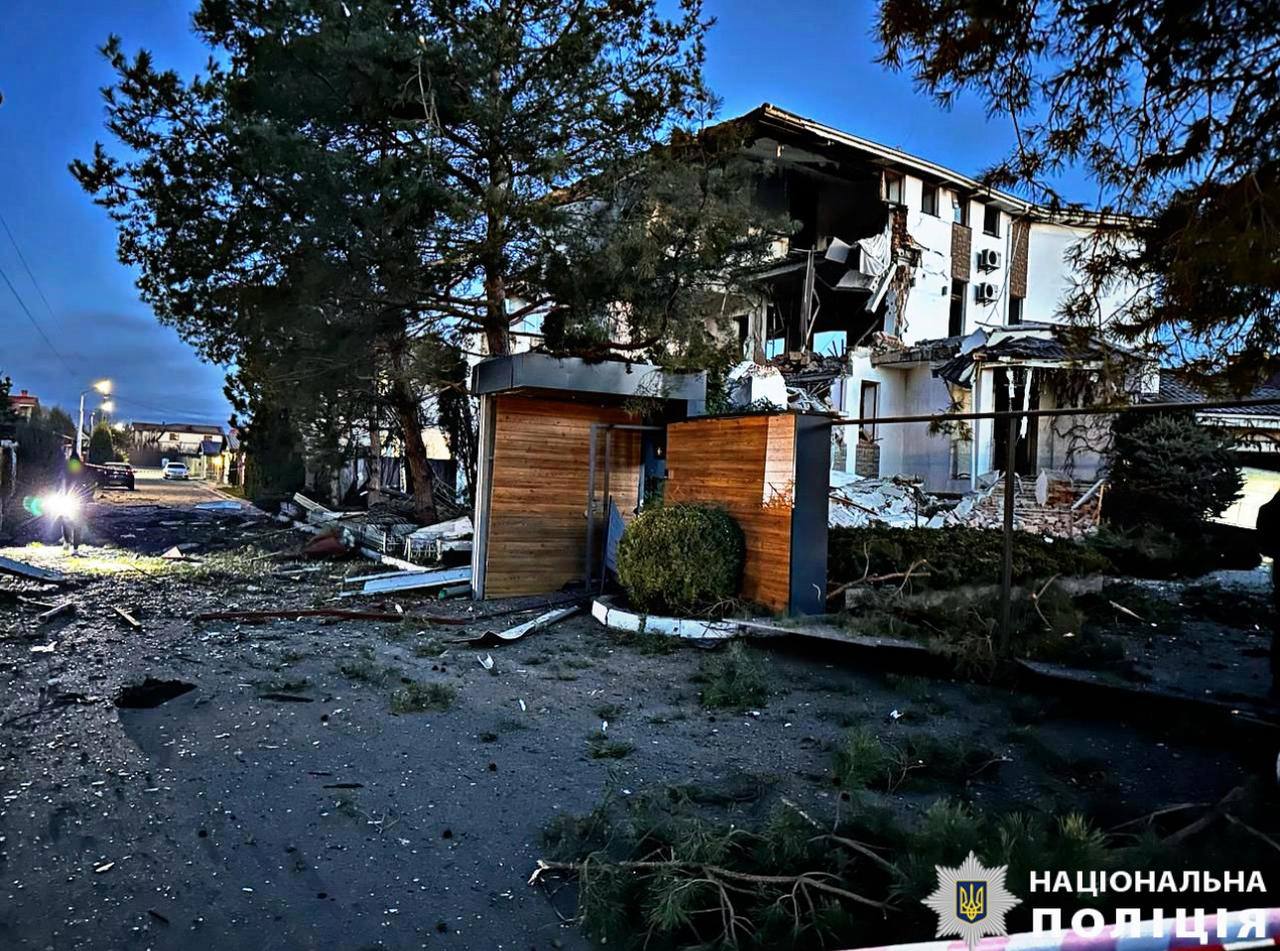 - падіння уламків збитого дрона на спортивний майданчик та сусідні будівлі. Пошкоджено скління вікон, фасад однієї з будівель. Без інформації про займання.