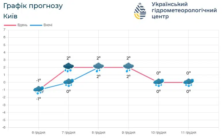 Фото: графік прогнозу погоди на Київщині з 6 по 11 грудня / Український гідрометцентр