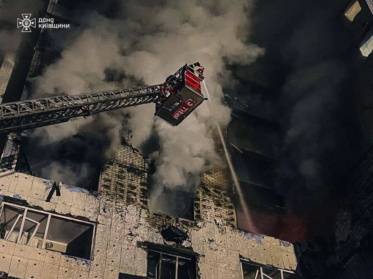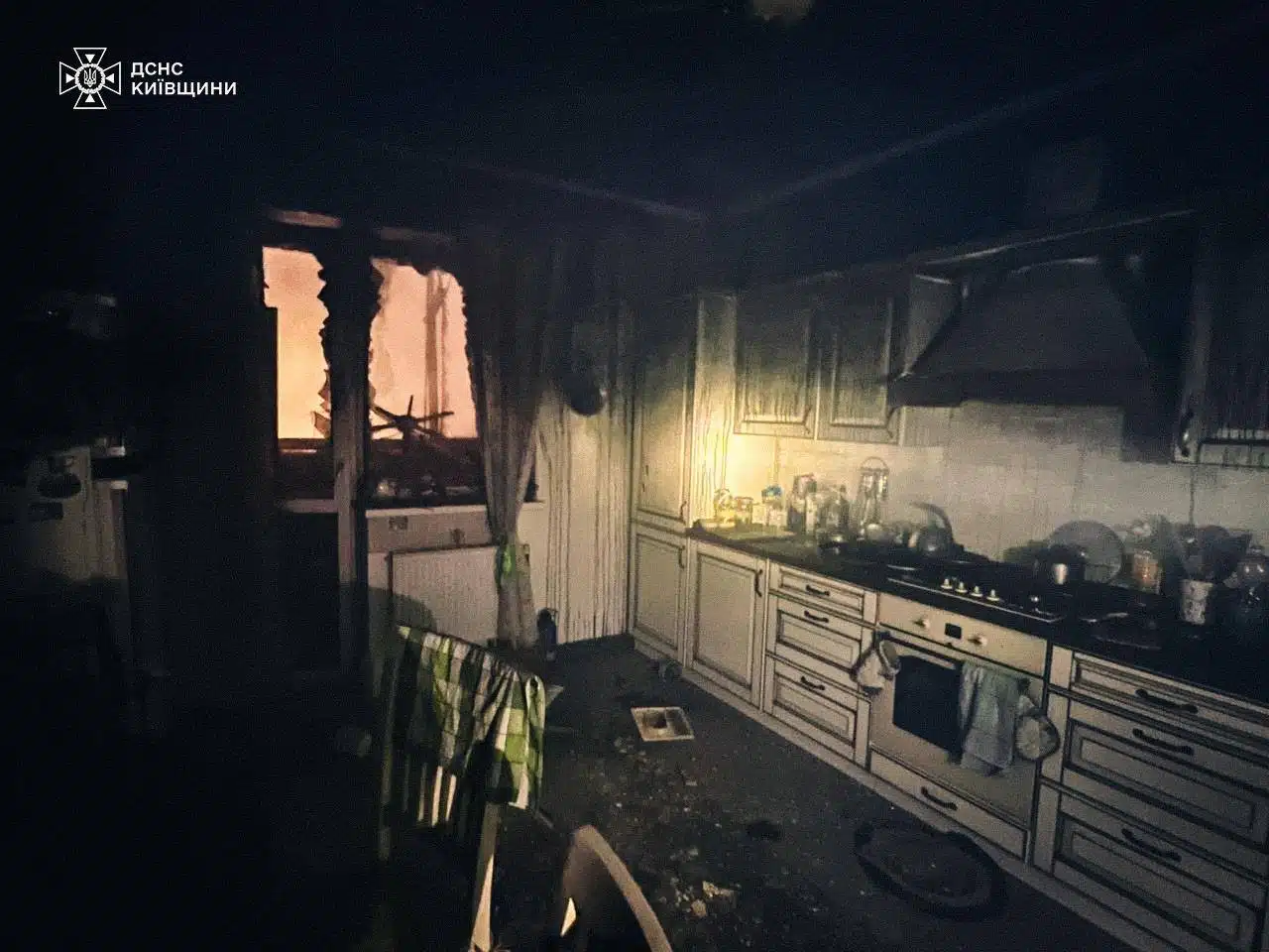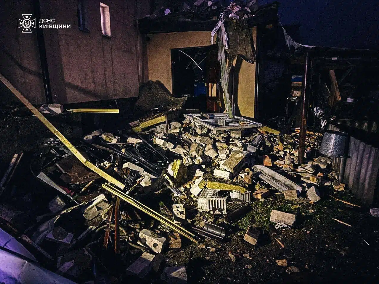 За повідомленням т.в.о голови Київської ОВА Миколи Калашника, в одному з районів постраждав 10-поверховий будинок, в якому пошкоджено 11 квартир. У ДСНС Київщини уточнили, що йдеться про Фастівський район.