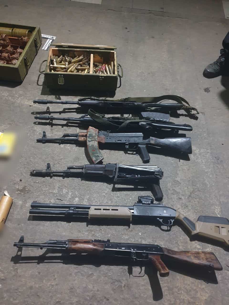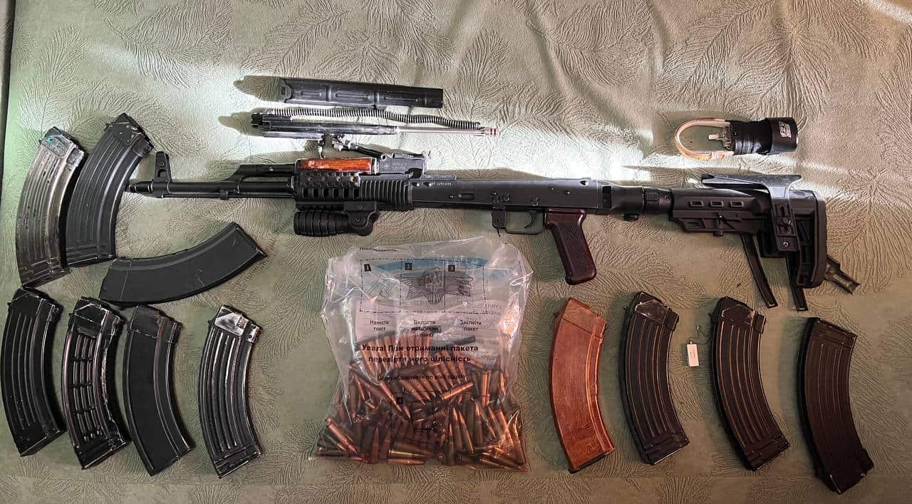 За даними слідства, підозрюваний незаконно зберігав зброю та боєприпаси. Проведено 22 обшуки в квартирах, господарчих будівлях та автомобілі. Вилучено автомати, магазини до автоматичної зброї, револьвер, нарізну та гладку мисливську зброю, понад 6500 набоїв різного калібру, 35 гранат, запали, міну, тротилову шашку, ножі, протитанкову керовану ракету, тепловізор та інше військове спорядження.
