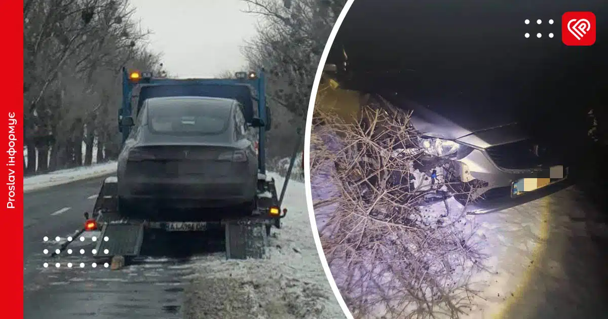 У Єрківцях Tesla пошкодила два колеса через яму на дорозі