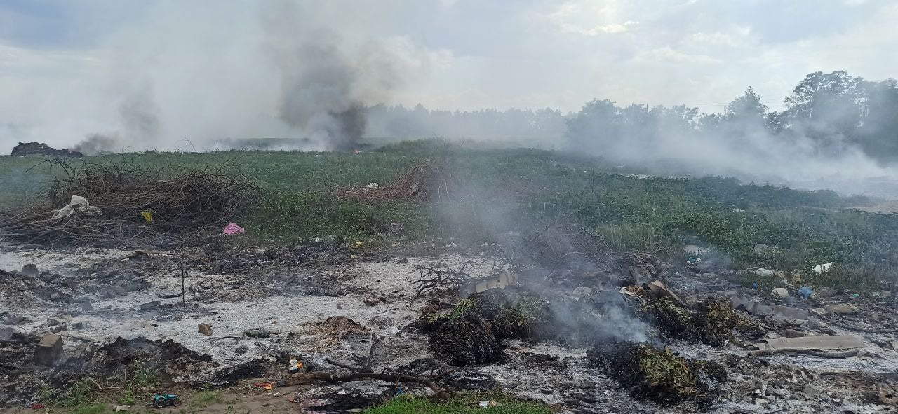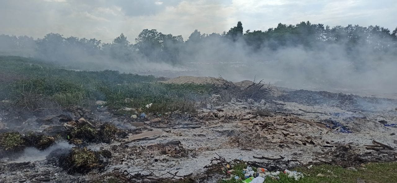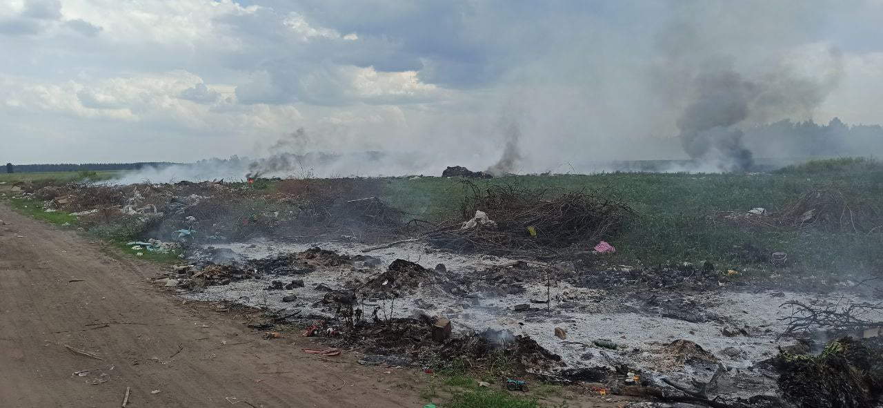 О 13:11 за результатами розвідки пожежники встановили, що горить несанкціоноване сміттєзвалище на площі 0,5 га. До найближчого вододжерела 2,5 км, до населеного пункту – 2 км.