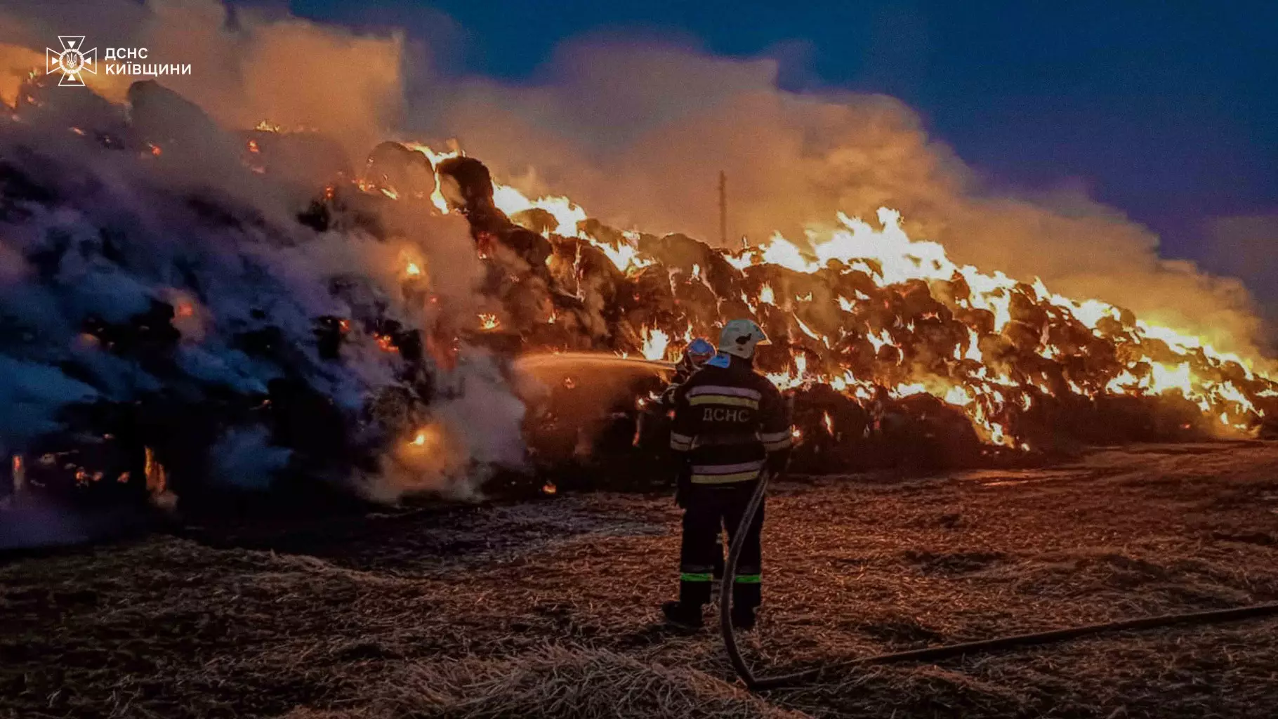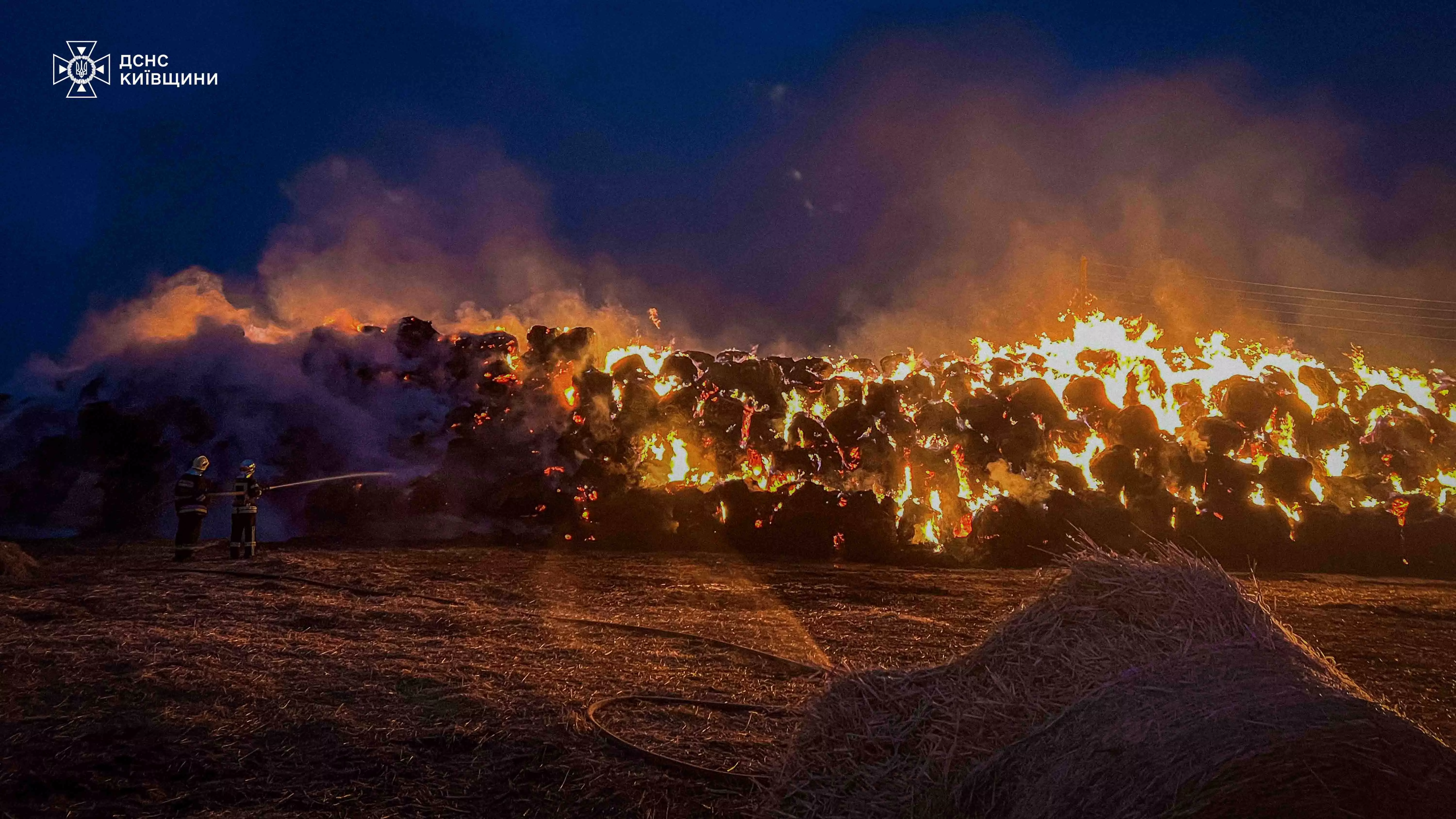 На місце виклику було направлено черговий караул 27-ї державою пожежно-рятувальної частини м. Переяслав. По прибуттю рятувальники встановили, що горять тюки соломи площею 360 кв. м.