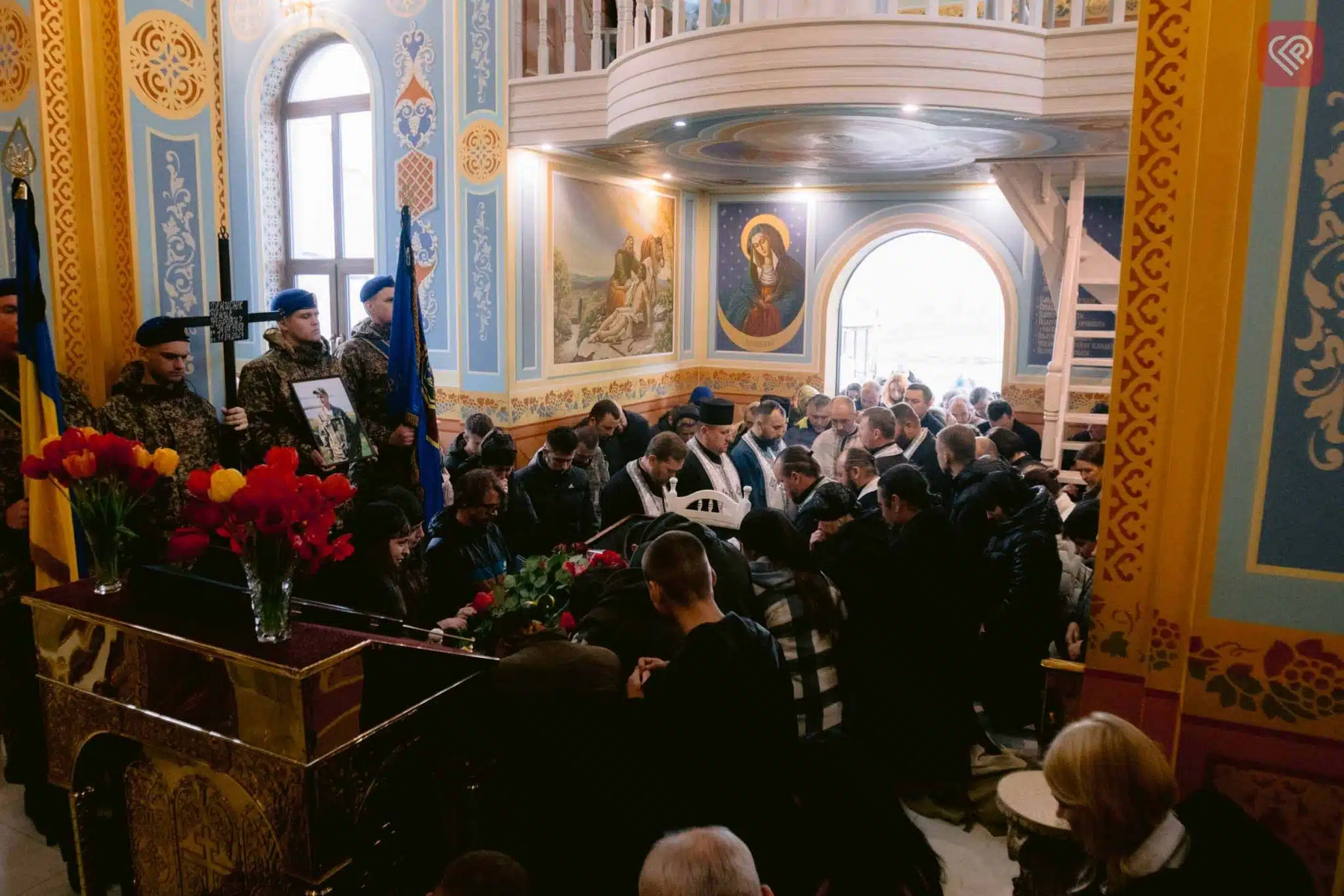 Далі скорботний кортеж попрямував до Переяслава, де у Храмі святого Володимира провели заупокійну літургію. Неможливо у ті хвилини втамувати біль згорьованих батьків та близьких. З проникливою промовою і словами підтримки до них звернувся настоятель церкви Іван Будняк: