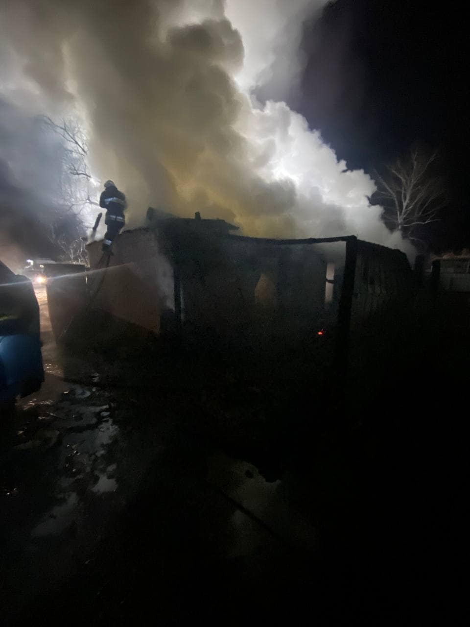 О 02:35 рятувальникам вдалось локалізувати вогонь і тільки о 03:41 – повністю ліквідувати загорання. Внаслідок пожежі було повністю знищено господарчу будівлю та дрова, які знаходились всередині. Однак вдалось врятувати автомобіль та уникнути загрози розповсюдження вогню на житловий будинок.