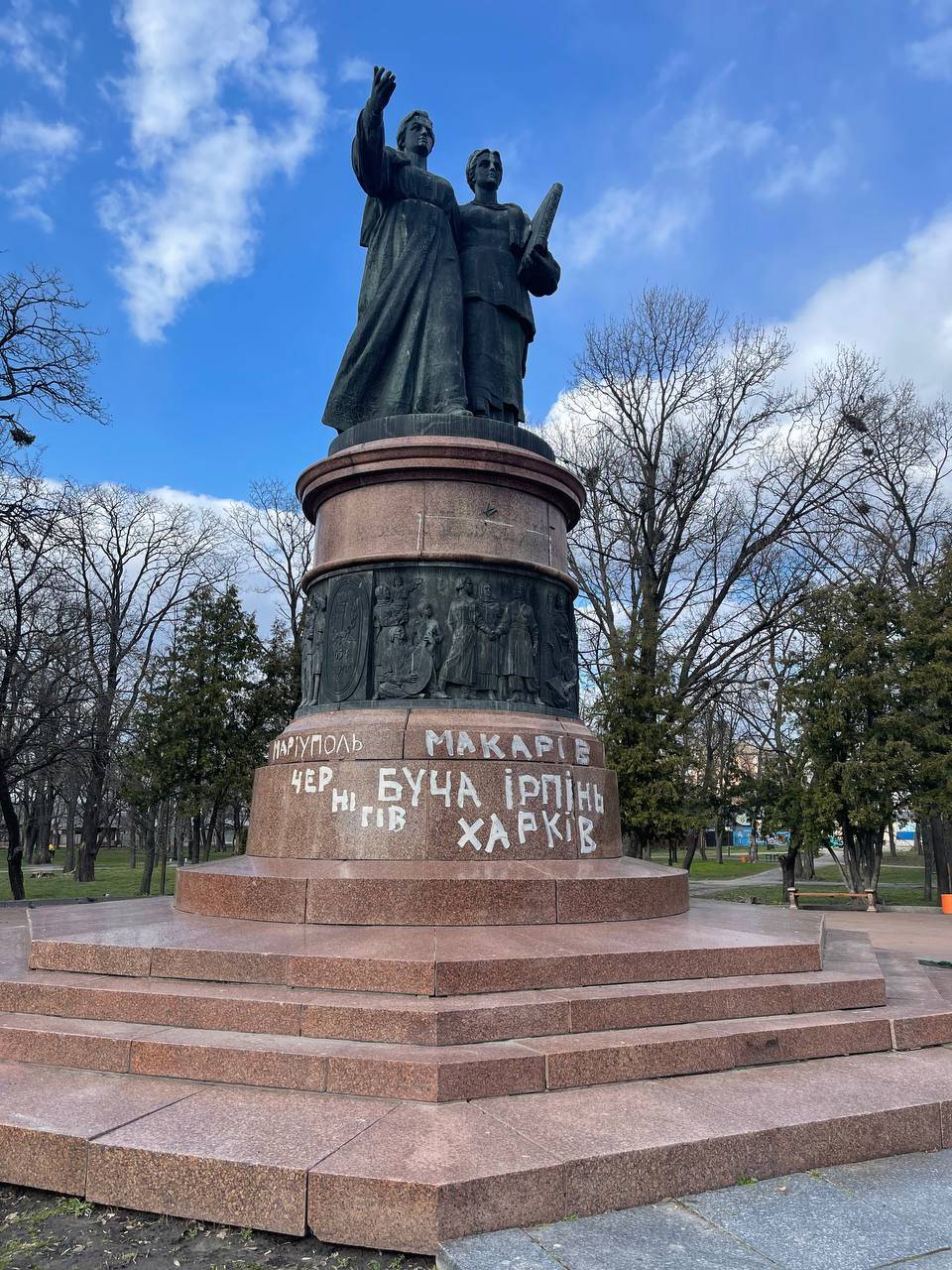 Сьогодні, у Переяславі на сумнозвісному пам’ятнику з’явились назви міст, які постраждали від рашистів. Таким чином, переяславчанин, Андрій Козій висловив підтримку та нагадав, що ніякої дружби з агресором не може бути.