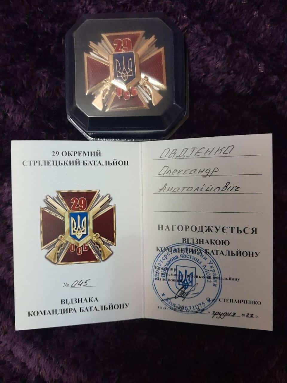 Молодший сержант Овдієнко Олександр Анатолійович, бойовий медик 3 механізованого взводу, 2 механізованої роти, військової частини А 4712 був призваний на військову службу 24.03.2022 року першим відділом Бориспілького РТЦК та СП Київської області. Був нагороджений грамотами від керівництва, мав дві нагороди.