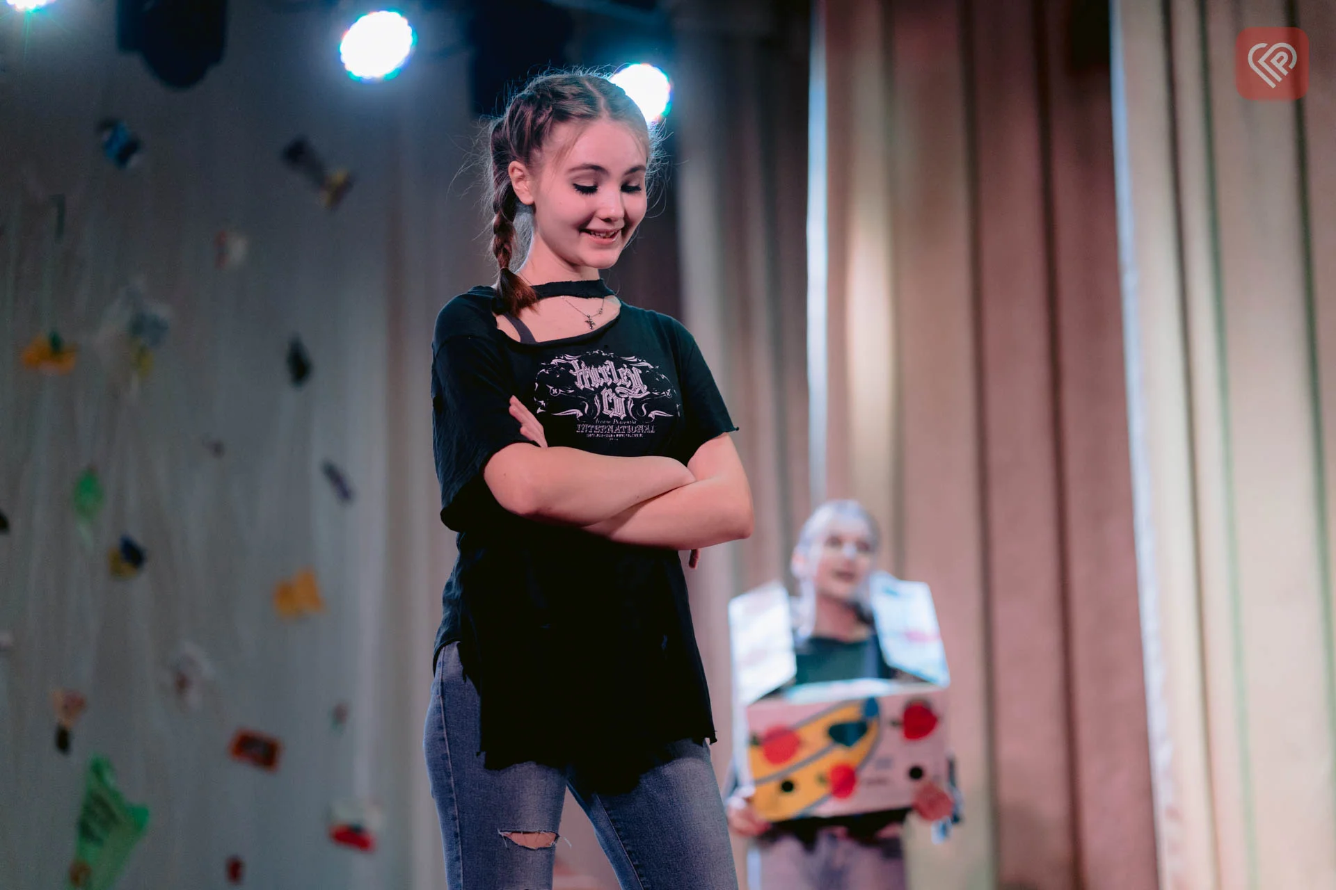 За якусь мить у залі у іпостасті прибиральниці будинку культури Анфіси Аркадіївни з’явилася неповторна Дар’я Семенчук аби вже за мить, повеселивши залу іскрометним монологом, «здійснити свою мрію» й перевтілитись у вправну танцівницю й продемонструвати чудовий номер з вихованицями студії бального танцю «Dance Victory».
