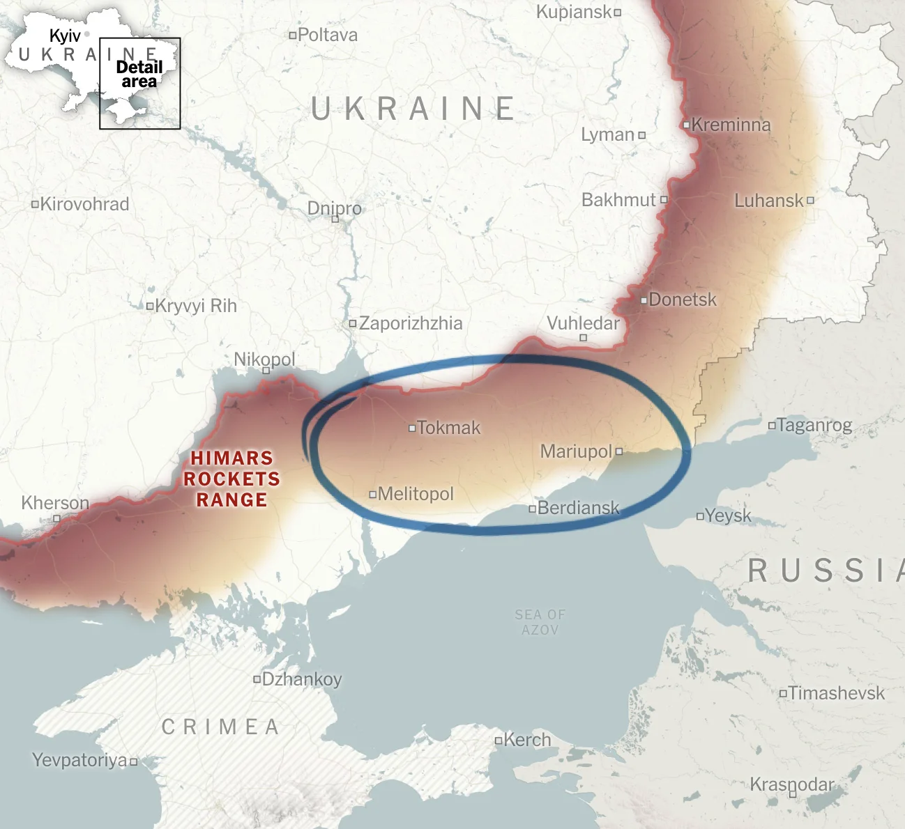 Значна частина окупованої Росією території знаходиться в радіусі дії ракет HIMARS, що змусило Росію перемістити свої склади боєприпасів, командні центри та інші важливі припаси далі від фронту.